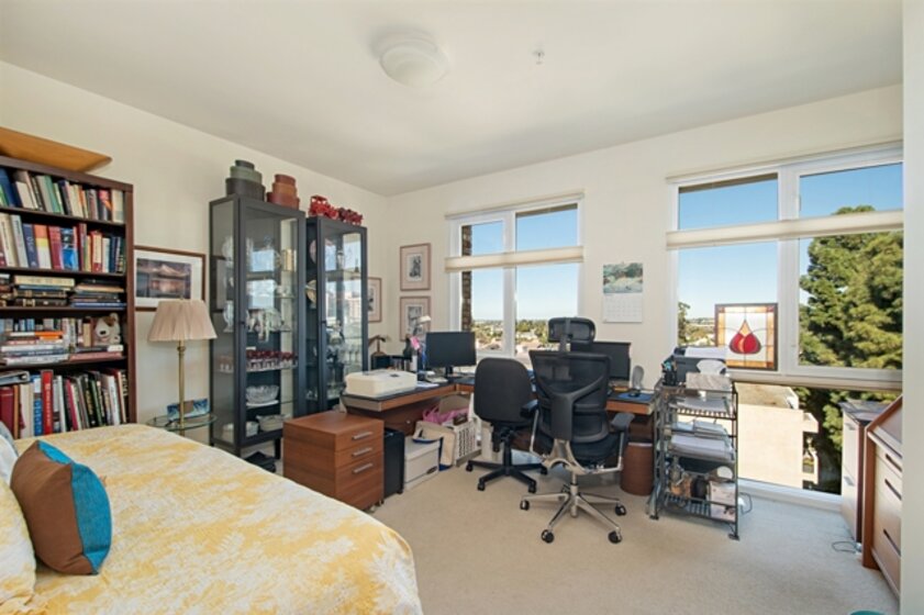 Top Floor! Consistent with it's superior Mission Hills address, residences are superbly finished in rich and contemporary color schemes; kitchens are appointed with Hansgrohe fixtures, Dacor gas cooktop, electric oven, Side by side (freezer down) refrigerator, undermount sink, undercabinet lighting,cesarstone counters, "soft close" drawers, corner lazy susans & full height backsplash. Master baths include hand tiled soaking tubs, designer light sconces, and raised wash basins. wheel chair accesssible. Penthouse! Residences offer 10 ft ceilings, smooth textured walls, and solid core doors. 1Mission common areas reiterate the luxury and attention to detail, as a gorgeous mosaic wall appoints the entry, wide, spacious halls are recessed lit and wood veneer panels enrich each home entry. Common "al fresco" patio encourages outdoor gatherings with gas grills, fireplace, seating areas and water feature. Outside the hub bub of downtown, but near enough to visit it, 1Mission is an enclave unto it's own; a 1 of a kind product in a 1 of a kind location!. Neighborhoods: mission Hills Equipment: Dryer, Washer Other Fees: 0 Sewer: Sewer Connected Topography: LL