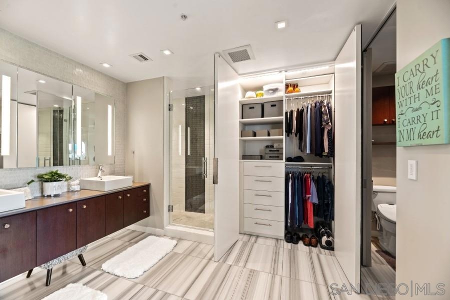 Welcome home to luxury living in Mission Hills! Top floor corner penthouse located in 1Mission with floor to ceiling windows provides panoramic views of the mountains & city lights.Rare spacious wrap around patio with peekaboo views of the ocean! Custom remodel, includes Lutron controlled lighting, blinds & HVAC, in-wall speakers, max storage built-ins, walnut wall, gourmet kitchen, Dacor gas cooktop, SS appliances, Silestone countertops &custom tile floors! Two underground parking spaces & extra storage! Your relaxing penthouse retreat awaits you at 1Mission in the exclusive historically acclaimed Mission Hills area! This unit was completely remodeled by the owner with custom flooring, tile and wood walls, window coverings, sound system and custom built-ins maximizing storage throughout. Enjoy the panoramic views and spectacular sunsets from the comfort of your living/dining room and with the push of a button lower the shades and feel cocooned and cozy. The attention to detail and luxury is unsurpassed in this well appointed 5-story concrete and steel constructed building known for its award winning architecture! Come home to your private enclave with owner fob entries, private access to the gated and secured property with underground parking and storage facilities. You’ll enjoy relaxing in the charming and beautifully landscaped courtyard with outdoor seating and dining tables. The “al fresco” patio complete with two BBQs, soothing tranquil water feature, and gas fireplace is perfect for meeting up with friends and neighbors! This fabulous home is nestled in the heart of the vibrant Mission Hills community with 5 star restaurants, two grocery stores, specialty shops, hair/nail salons, and cafes all within walking distance. Just minutes away from attractions such as Balboa Park, Old Town, Little Italy, Hillcrest, Mission/Fashion Valley, Gaslamp Quarter, local beaches, the airport and activities like hiking/biking and walking trails. Nearby access to 3 majo...
