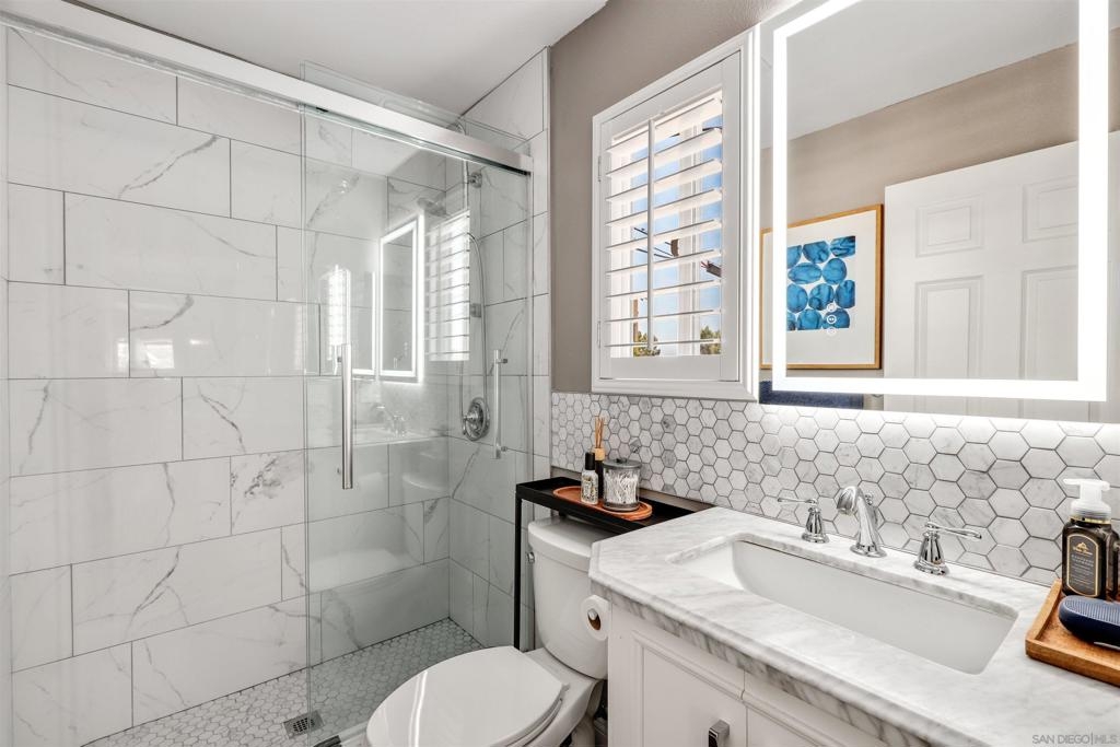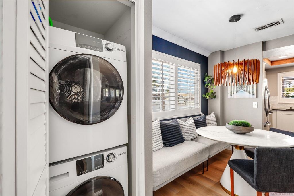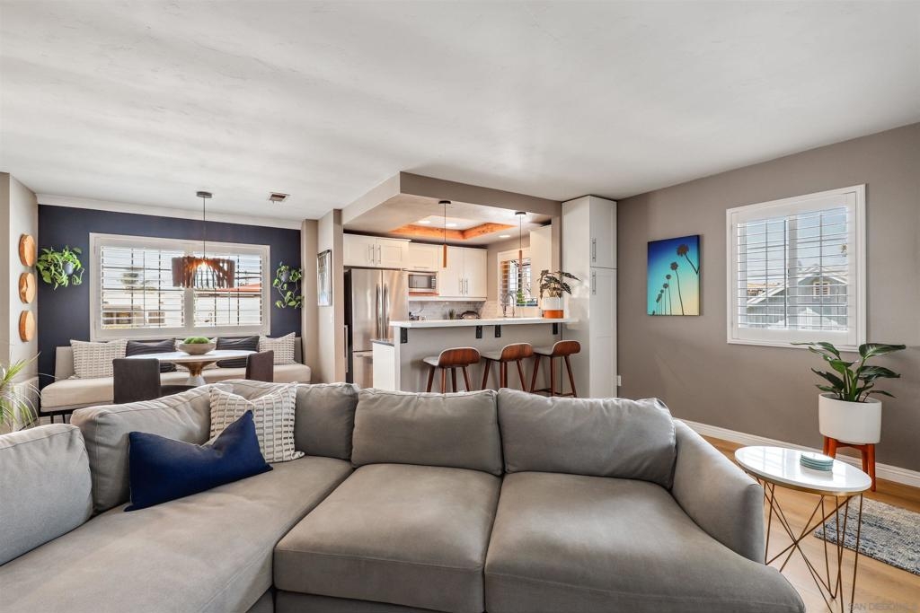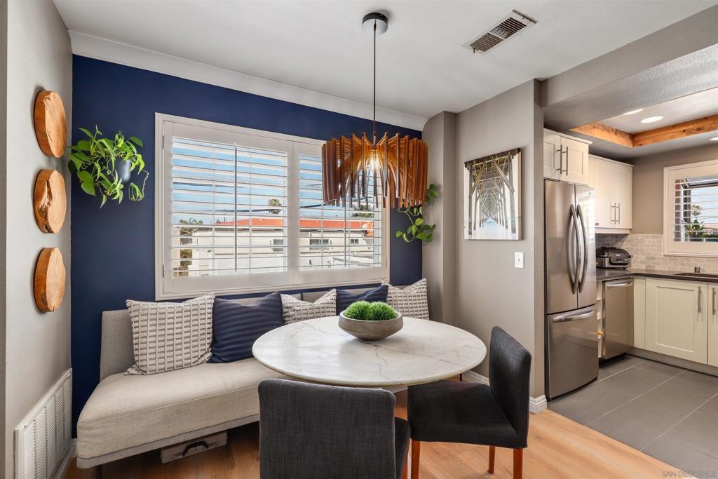 Unbelievable opportunity awaits! Enjoy this fully upgraded, top floor, corner unit that backs to a quiet alley and has LOW HOA dues. This quaint, gated complex is located on a small cul-de-sac, putting you mere blocks from all the Hillcrest amenities, while maintaining privacy. An open floor plan is illuminated with abundant natural light and provides seamless flow between the living room, dining area and kitchen. Gather in front of the cozy fireplace in the living area for added ambiance. Unbelievable opportunity awaits! Enjoy this fully upgraded, top floor, corner unit that backs to a quiet alley and has LOW HOA dues. This quaint, gated complex is located on a small cul-de-sac, putting you mere blocks from all the Hillcrest amenities, while maintaining privacy. An open floor plan is illuminated with abundant natural light and provides seamless flow between the living room, dining area and kitchen. Gather in front of the cozy fireplace in the living area for added ambiance. The kitchen has been upgraded to feature crisp, white shaker cabinetry, gorgeous countertops accented by a decorative subway tile backsplash, natural wood accents and an eat-at counter illuminated by stunning pendant lighting. Gorgeous laminate flooring and shutters throughout. In-unit laundry closet accommodates a full-size stackable washer and dryer. The bathroom has been upgraded with modern flair to feature a stunning step-in shower with tile surround and glass doors. Stay organized with your own HUGE walk in closet. Parking is a breeze with a dedicated, assigned parking space in the alley (4th space over). This turn key residence is a must see!