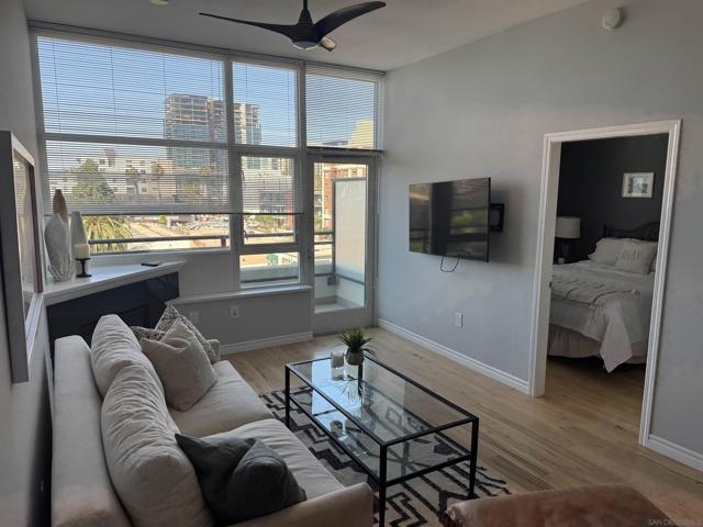 Spectacular 5th floor 1-bedroom condo at Alicante with great northwesterly views and cool breezes. Enjoy all the wonderful activities that Banker's Hill has to offer, then come home to the privacy and security of this well-managed and beautifully maintained complex. Wood plank flooring throughout the living area and bedroom, easy to maintain tile in the kitchen and bath. Granite counter tops and stainless steel appliances, stackable laundry machines in your own laundry room. Locking storage unit and one parking space in the secure underground parking lot.