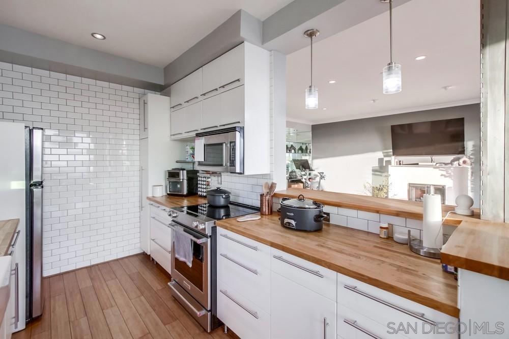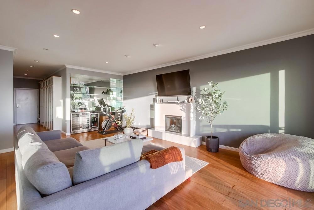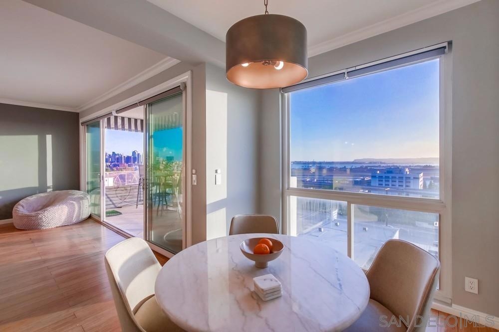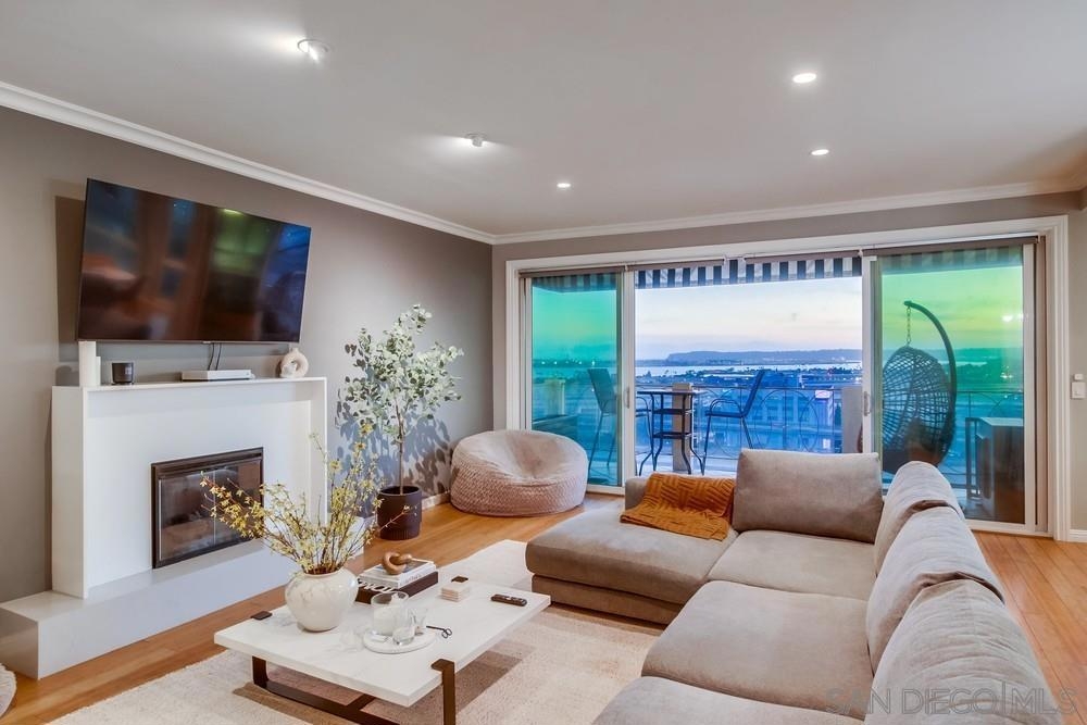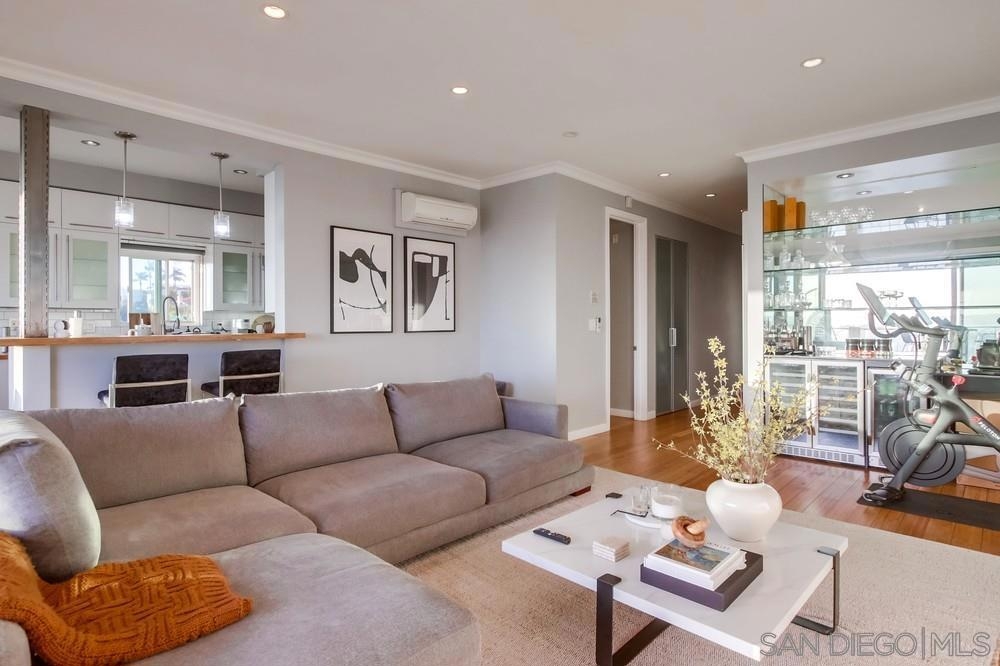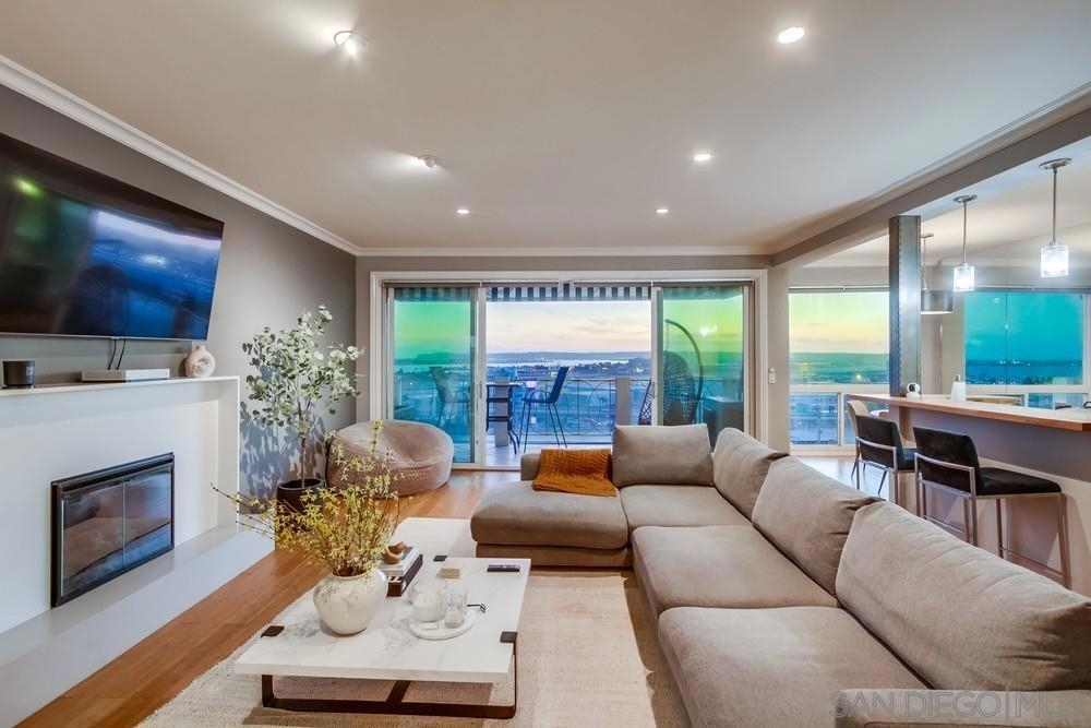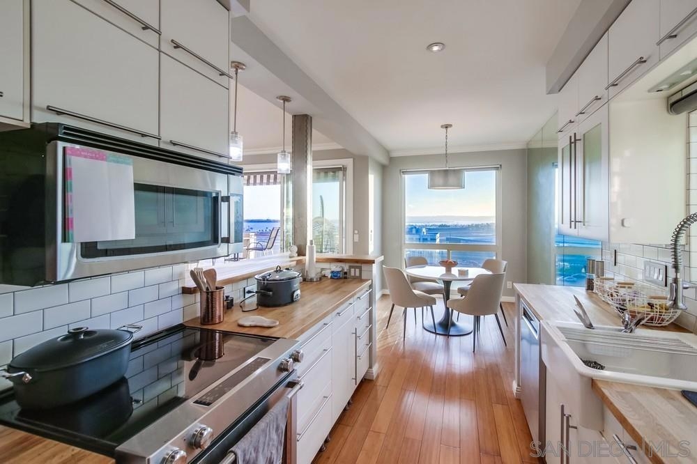 Million Dollar views for under 800k. Unobstructed 180 degree sit down views of the Pacific, Downtown, San Diego Bay, Point Loma, to Seaworld. 9’ ceilings with an open floor plan and an 18’ Balcony. Butcher block counters and subway tile with a farm style sink in the kitchen. Hall laundry, built-in bar with Wine fridge and beverage cooler. Custom closet with built in drawers and ample storage. Enjoy the sunsets every evening, and every SD Bay firework show on the 4th of July from your couch. Low monthly HOA in prime walkable location surrounded by multi-million dollar homes.