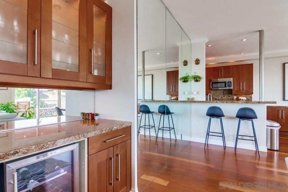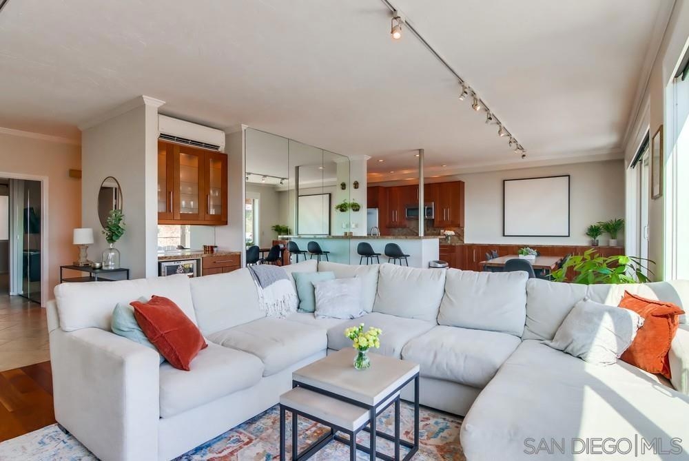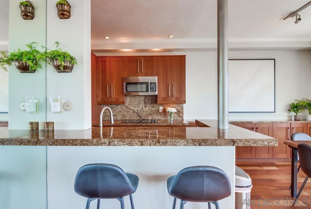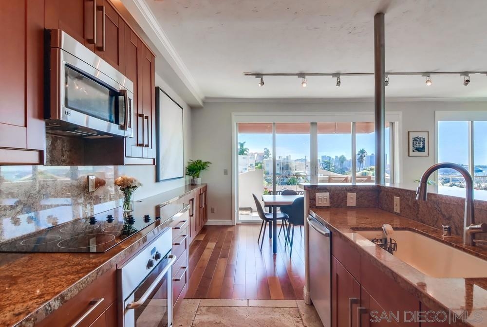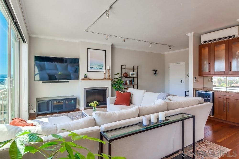 Breathtaking panoramic bay views from downtown city skyline to Point Loma! This completely remodeled home includes spacious open floor plan with 10ft ceilings, updated flooring and kitchen. Light and bright, this unit comes with a split floor plan with two large bedrooms and bathrooms, spacious dual master closets. Washer/dryer in unit, newer zoned heating/cooling systems, secure garage parking with EV charging installed. Large storage container. Low HOA dues. Walk to restaurants, bars etc Sewer: Sewer Connected