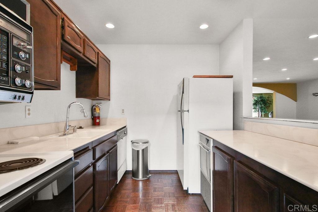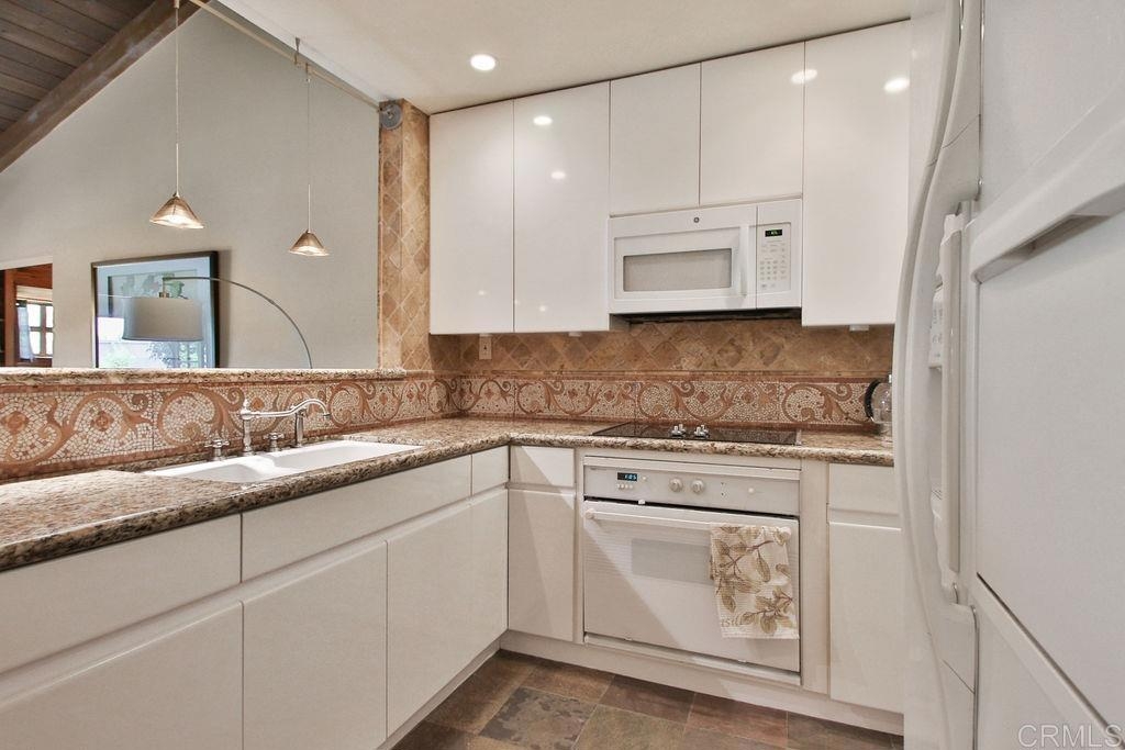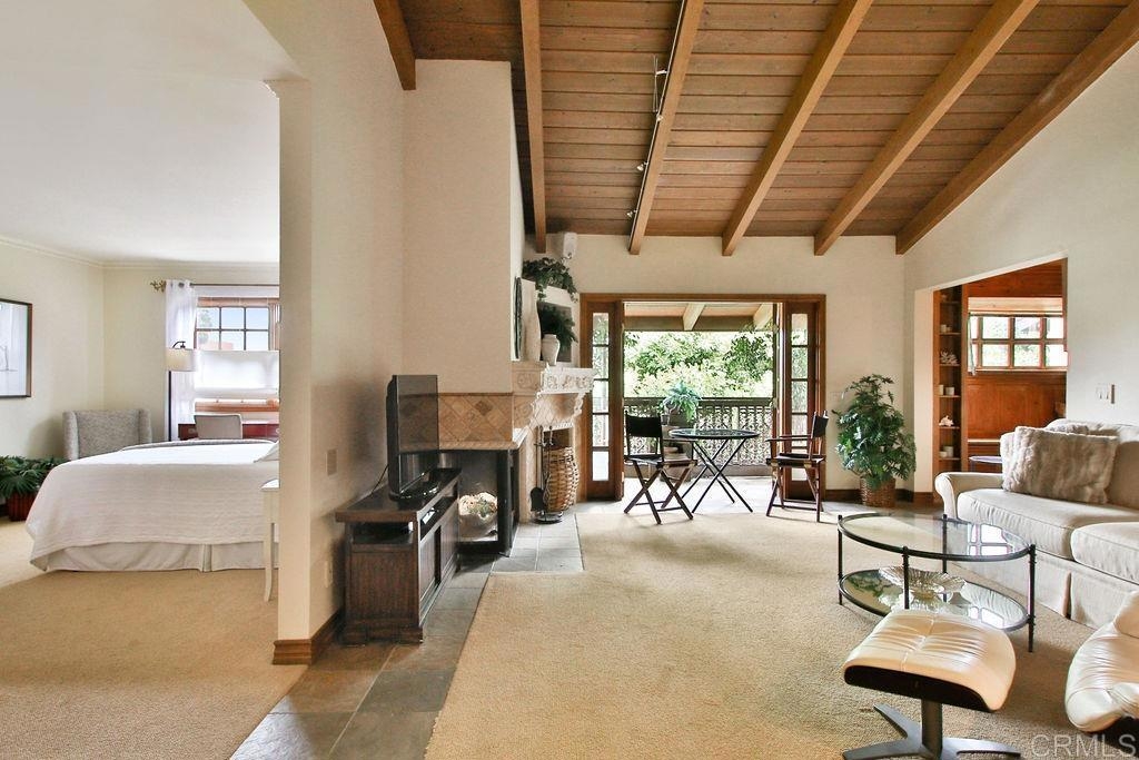 Amazing Location! Mission Hills top floor, corner unit, cozy single story with exceptional details and a unique Italian style design 1BR+office/1BA condo. Cathedral wood beam ceilings, spacious, open flowing floor plan & a built in office (8x7). Wood burning fireplace with tumble marble face. Award wining remodeled kitchen a few years ago (no DW). French wood doors open to a slate covered balcony surrounded by trees that provide privacy. W/D in the unit! Secured building, elevator & gated underground parking. Storage room. Wonderful amenities for your enjoyment: Pool/sauna/gym/roof deck/community room with kitchen. Easy commute to major freeways. Walk to shopping (Vons), restaurants, coffee shops and more. Walk virtually end explore this gorgeous unit with the "matterport link" labeled virtual tour. Enjoy! Seller will entertain offers between $575,000 to $615,000