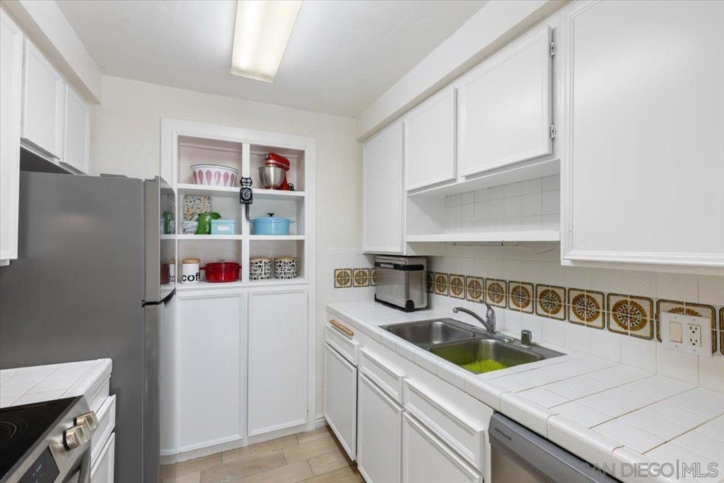 Discover this exceptional Rarely available Spanish Mediterranean condominium situated in the prestigious Mission Hills district! UNDER 500K!!! This residence features two tone paint, elegant crown molding, Tiled floors throughout, Newer tub and tile surround, enjoy a floorplan that offers generous open layout extending to a private balcony overlooking a lush wooded area. All rooms are well appointed, the bedroom is spacious with a large walk in closet. The spacious serene living room flows seamlessly into the dinning area off the kitchen which is equipped with a new fridge, range hood and dishwasher. Freeway access is just around the corner making your travels convenient, yet this residence offers peaceful seclusion from urban bustle. The location provides easy access to retail shops, grocery stores, banks, cafes, nightlife, dining establishments, and various amenities blocks away. Minutes from Fort Oak, Kettle & Stone and Wolf in the Woods to name a few. Pioneer park is just down the street! This complex offers controlled entry, underground dedicated parking with bonus storage area. An elevator connects the parking area to residences. Community amenities include a spacious clean laundry room, glimmering swimming pool, distinctive Saltillo-tiled pathways, with manicured grounds, and decorative Spanish fountains creating a tranquil, welcoming atmosphere.