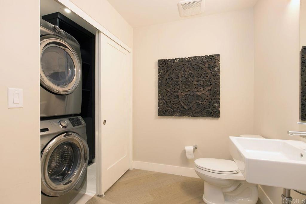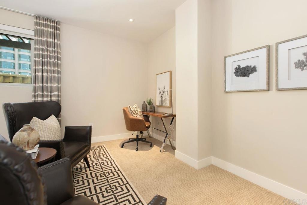 HUGE PRICE REDUCTION This home is a true masterpiece with exceptional design details... a Vision at the "Vue on 5th." This boutique luxury property is one block away from Balboa Park and all it's amazing museums and cultural events. This expansive condo is approximately 1990 sq ft. Enjoy urban living with views up and down 5th Avenue! Enter a single story open floor plan property with 2 Master Bedrooms suites and a powder room. The en-suite bathrooms are exquisite in function and design. Both bedrooms have large walk-in closets. The contemporary designs feature La Cantina doors to the wrap-around patio. Enjoy our California sunshine all day long with indoor-outdoor entertaining. The kitchen boasts contemporary fixtures, high-end stainless steel appliances, a large center island for informal dining. How about a game of pool on the ingenious pool table/dining room table? It's yours with the property! Full sized, stackable washer and dryer and built-in refrigerator are included within this home. This unit includes 2 underground parking spaces and a storage area. Electric charging stations are available to use for a small cost. Low HOA fees! No Mello Roos fees! Imagine being so close to the cultural center of San Diego, Petco Park, restaurants, parades and fun! Live your best life at the "Vue on 5th."