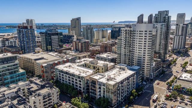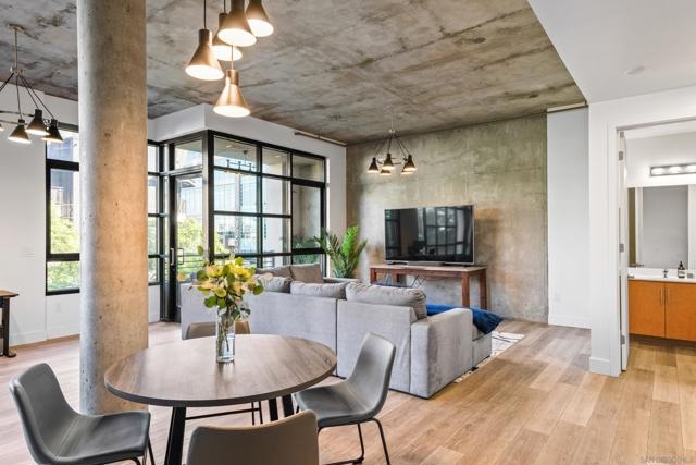 Effortless Live-Work-Play living in this desirable loft-style condo in the highly sought-after M2i complex, by Petco Park and trendy East Village shops and dining! Bright and airy, the home features high ceilings, exposed concrete details, and expansive windows, with a flexible layout that offers privacy in the bedroom area. Upgrades include stone countertops, vinyl wood-plank flooring, contemporary lighting, custom ceiling fans, stainless steel appliances, and a luxurious renovated primary bathroom. Located in the coveted M2i complex, residents enjoy affordable HOA dues and top-tier amenities: a fully updated fitness center with brand-new equipment, a lush courtyard, and a rooftop patio with BBQs and a fire pit. Just two blocks from Petco Park and steps to some of Downtown San Diego’s best rated restaurants, coffee shops, and nightlife, with easy access to major freeways, this home delivers style, function, and unbeatable location. Experience chic urban living in this loft-style condo at East Village’s sought-after M2i. High ceilings, expansive windows, and exposed concrete details create an airy, industrial-chic vibe with flexible space to create privacy in the bedroom area. Upgrades include stone countertops, wide-plank vinyl flooring, designer lighting, ceiling fans, stainless steel appliances, and a fully renovated spa-inspired bathroom.