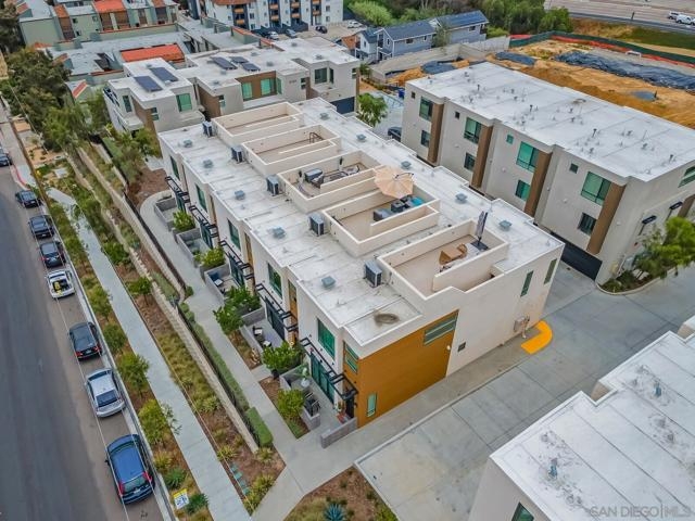Modern 3-Bedroom Townhome with Rooftop Deck & Prime Location. Built in 2022, this light-filled and stylish 3-bedroom, 2.5-bath townhome combines modern convenience with thoughtful design. Featuring an open floor plan with soaring 12’ ceilings, wood-engineered laminate floors, and recessed lighting throughout, this home offers a bright and airy living space perfect for both relaxing and entertaining. The gourmet kitchen boasts shaker-style cabinetry, quartz countertops, and stainless steel appliances—ideal for home chefs. A spacious private front patio provides a welcoming entry, while the spectacular rooftop deck is the crown jewel—plumbed for gas and power, ready for BBQs, entertaining, or simply taking in stunning panoramic views. Additional highlights include: central A/C and ceiling fan for year-round comfort, primary custom closet and raised panel doors, convenient side-by-side laundry, direct-access 2-car garage with built-in storage, powder room for guests, low HOA dues. Perfectly situated near major freeways, top-rated schools, downtown, restaurants, parks, the waterfront, and the world-famous San Diego Zoo, this home offers unbeatable access to everything San Diego has to offer. Don’t miss this rare opportunity to own a newer-build, move-in ready townhome in the heart of the city. VA Assumable 5.499% $760k balance.