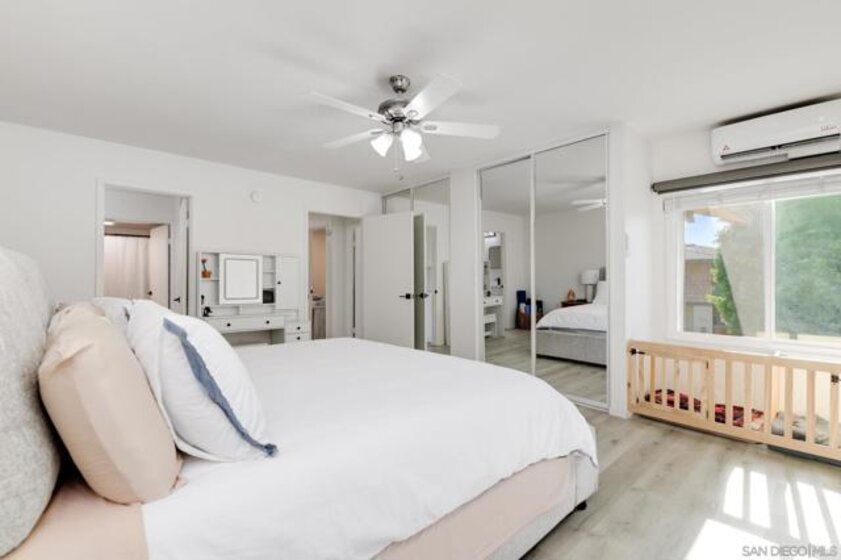 Gorgeous 3 bedroom, 1.5 bath townhome in Mission Valley! Move-in ready, end-unit townhome with attached deck, laundry room, brand new A/C & heating. Brand new dual pane windows, custom cabinets with pantry wall and coffee station, quartz countertops, and high-end stainless steel appliances! Come fall in love with this open concept home. A large living room with a beautifull brick fireplace with wooden mantle and shelving over-looking the open greenbelt out your front door. Second floor features 3 large bedrooms: a large primary bedroom with ample closet space and custom shelving; 2 additional bedrooms with large closets overlook the green areas; large bath with dual sinks and full size bathtub, and bonus attic space for storage with pull down stair access. An additional half bath is located downstairs for convenience. This unit has it all! Centrally located, minutes SDSU, Fashion Valley, Friars Rd and to all Mission Valley has to offer. Truly a must see.