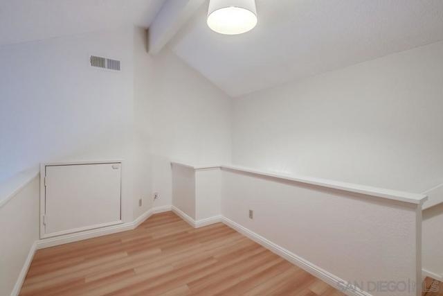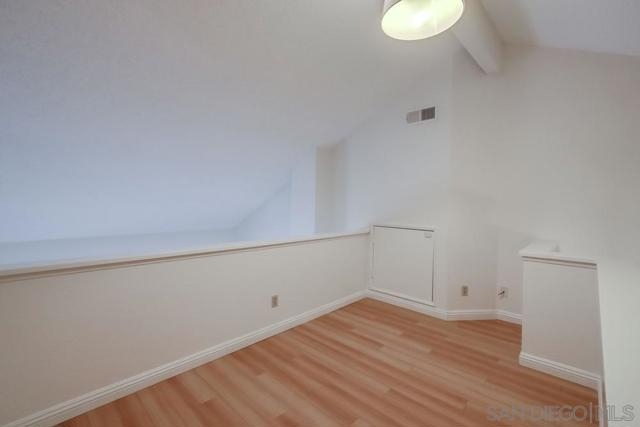Welcome to the beautifully updated Canyon Bluffs Condo with Loft located on the edge of Sorrento Valley and Mira Mesa. This top-floor 2BR/2BA condo with a spacious loft (optional 3rd bedroom or office) offers unbeatable convenience, just 10 min to Qualcomm and 12 min to UCSD. Freshly painted and featuring new bathroom countertops, vaulted ceilings, and abundant natural light, this home feels open and inviting. The primary suite boasts dual sinks and a large walk-in closet. Highlights include a modern granite kitchen with custom cabinets, a cozy fireplace, an HVAC system, a spacious laundry room, and a private front patio. Two oversized walk-in attic spaces provide incredible storage or potential for expansion. Enjoy assigned parking, ample guest parking, and resort-style amenities including a pool, spa, and recreation room surrounded by lush greenbelts. Close to shopping, dining, and freeways—this home offers the perfect blend of comfort, style, and location.