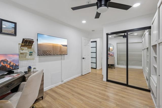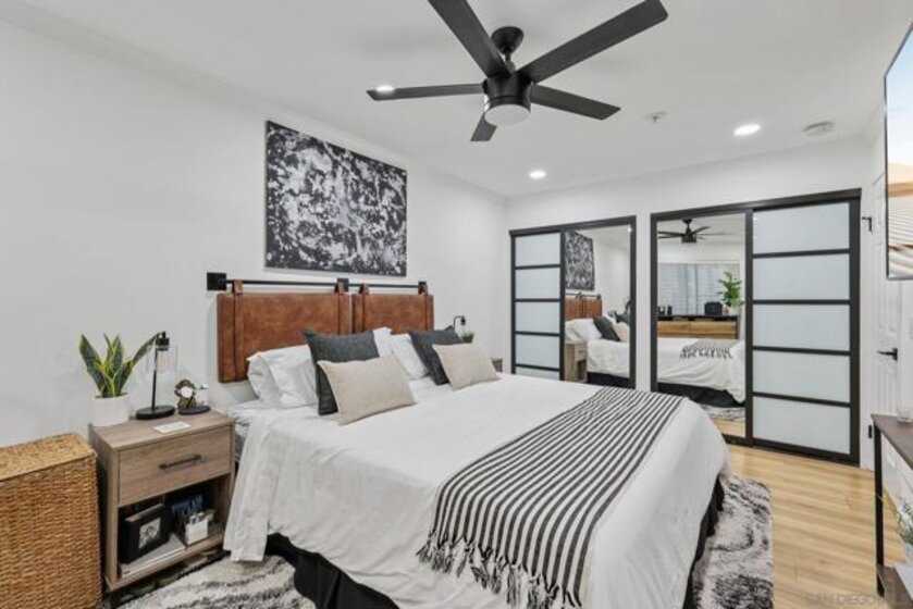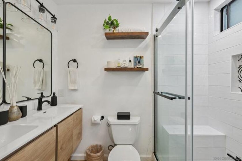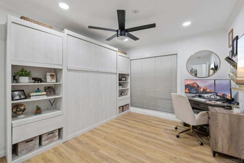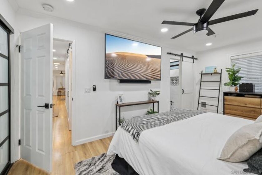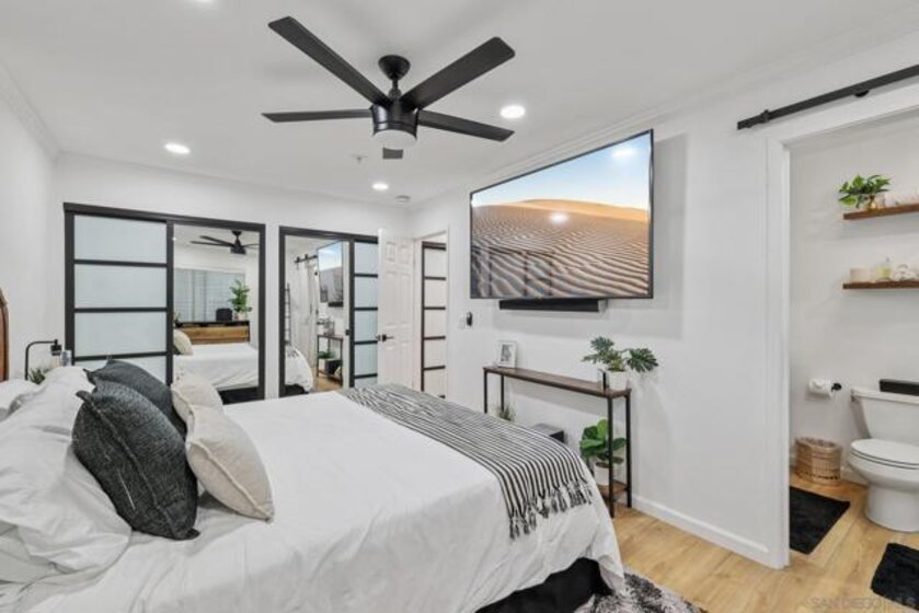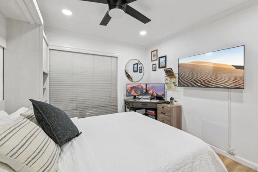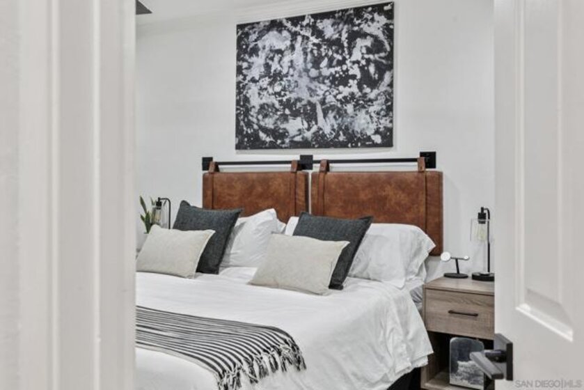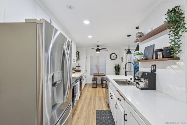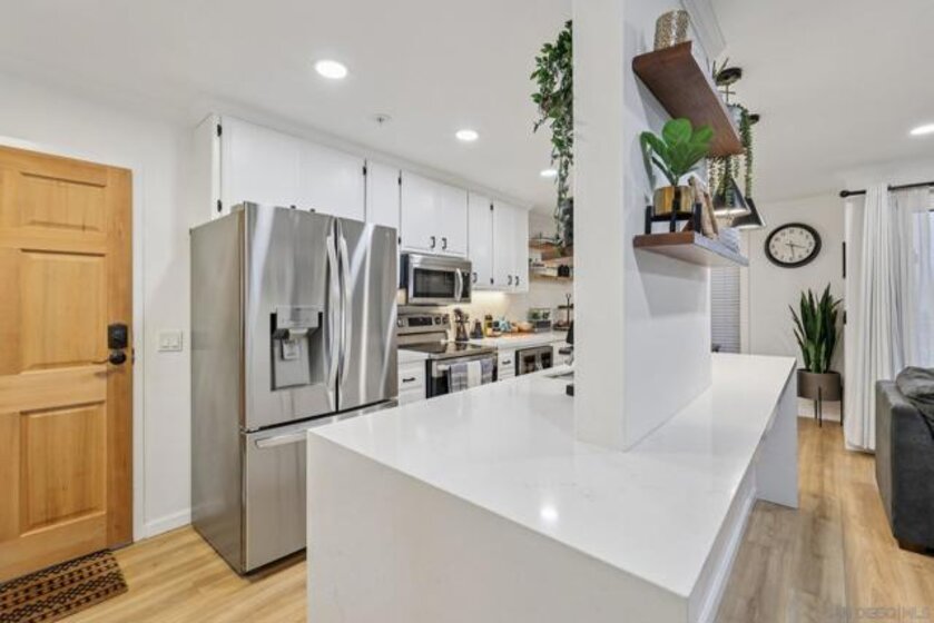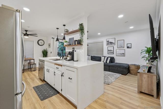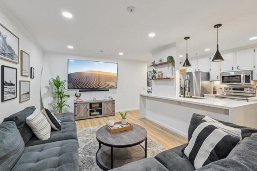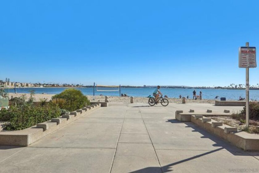 Live the quintessential coastal lifestyle in this beautifully updated Pacific Beach condo—just steps from the sun, sand, surf, and sparkling Sail Bay! Ideally situated in one of San Diego’s most coveted beachside neighborhoods, this home offers exceptional access to Mission Bay, the ocean, boardwalks, bike paths, water sports, dining, cafés, and endless outdoor recreation right outside your door. Recently remodeled with modern finishes and a soothing neutral palette, this light-filled, move-in-ready retreat blends relaxed coastal living with contemporary style. The open floor plan features a bright living and dining area flowing seamlessly to a serene private balcony—perfect for enjoying bay views and refreshing sea breezes. The stunning kitchen boasts stone countertops, a large center island with breakfast seating, stainless steel appliances, and abundant workspace for cooking and entertaining. A spacious gallery hallway leads to the primary suite, complete with plenty of closet space and a stylish barn door entry to the spa-inspired bath featuring dual sinks and a walk-in shower. The versatile guest bedroom, outfitted with a Murphy bed, is ideal for guests or a home office, and is serviced by an additional beautifully updated full bath. Additional highlights include two secure parking spaces and access to the Santa Susanna community amenities—a sparkling beach-side pool, BBQ area, and direct access to the bay and sandy beaches. Experience effortless coastal living where every day feels like a vacation.