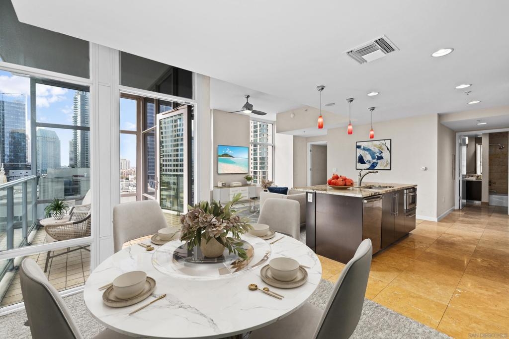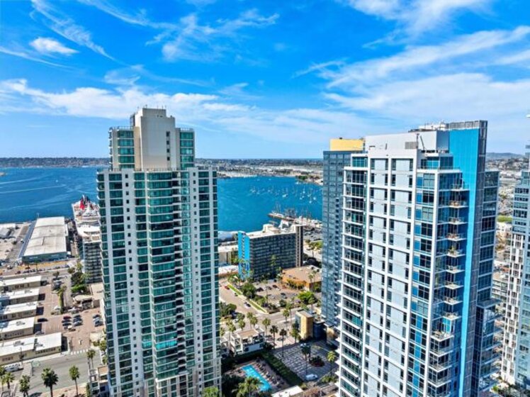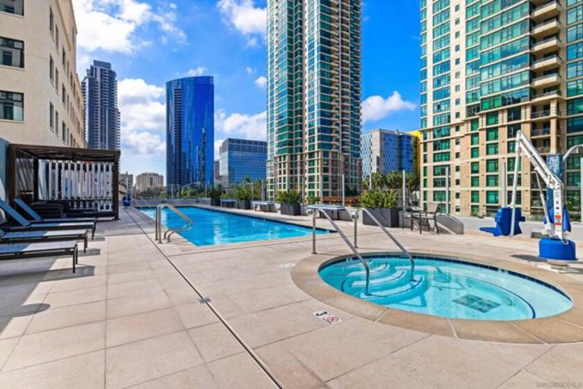 Welcome to Sapphire Tower, an exclusive boutique high-rise ideally positioned at the intersection of the vibrant Little Italy and Columbia districts. This premier location offers a true urban lifestyle—just moments from acclaimed restaurants, charming cafés, boutique shopping, and the scenic waterfront along the Embarcadero. This expansive southeast corner one-bedroom residence features soaring 10-foot ceilings and dramatic floor-to-ceiling windows, filling the home with abundant natural light while showcasing sweeping city views. The spacious private balcony provides an ideal setting to relax, entertain, and enjoy refreshing coastal breezes above the city. With only 99 residences, Sapphire Tower offers an intimate and refined residential experience rarely found in downtown high-rises. Residents enjoy an impressive suite of amenities including 24-hour concierge service, an on-site manager, heated lap pool, spa, sauna, outdoor BBQ area, fitness center, entertainment lounge, and an elegant lobby designed for both comfort and style. Perfectly located just steps from the renowned dining scene and weekly farmers market of Little Italy and only two blocks from the waterfront, this residence offers the best of luxury urban living in one of downtown San Diego’s most desirable neighborhoods. An exceptional opportunity—competitively priced and ready to impress.