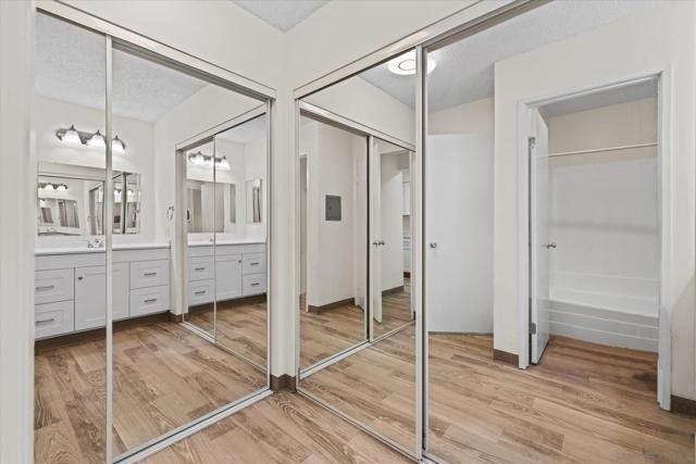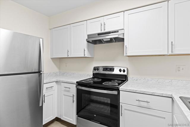 Welcome to your bright retreat in the heart of San Diego! Tucked inside a quiet community, this desirable second-floor condo combines comfort, convenience, and style. Step inside to find a large living/sleeping space filled with natural light, a cozy dining area, and a spacious bathroom and closet for added functionality. Recent updates—including fresh carpet, newer cabinetry, vanity, appliances, wall AC unit, and refinished tub—bring a refreshed feel throughout. A private patio extends your living space outdoors, perfect for morning coffee or evening unwinding. Resort-style amenities await just outside your door: take a dip in the sparkling pool, soak in the spa, host a weekend BBQ, or take advantage of the community laundry facilities. With your own assigned parking spot and quick access to the trolley, Fashion Valley, and the scenic San Diego River, everyday living feels effortless. Whether you’re looking for your first home or a stylish city escape, this condo offers the perfect blend of location, lifestyle, and value.