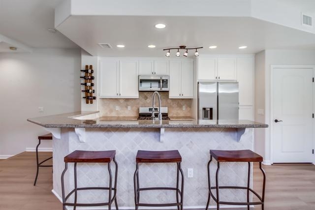 This end unit townhome is just a few blocks from the sand and offers the perfect blend of comfort, style and location. Flexible floor plan includes an optional 3rd room/office area, ideal for guests or a home office. With spacious living space, in-unit laundry, A/C, 1 car private garage w/ additional spot and the beach just a few minutes away, this is PB living at its best. Soak in the sunshine and Sea World Fireworks from the upstairs patio!