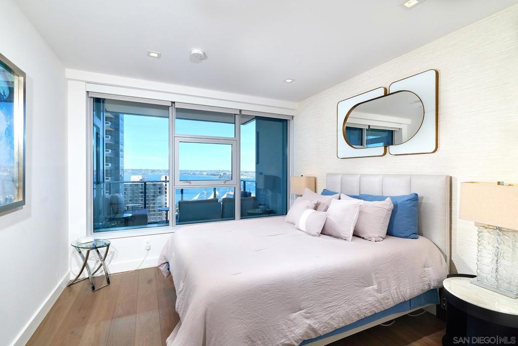 Welcome to one of the best addresses in Downtown San Diego! This exceptional west-facing “09” residence offers beautiful San Diego Bay views and an abundance of natural light. The home features custom blinds, engineered hardwood flooring, recessed lighting throughout, and upgraded California Closets for optimal storage. Finished in the highly sought-after Urban scheme, the interior blends modern style with comfort and functionality. Ideally located just moments from the San Diego Bay and the vibrant shops and restaurants of Little Italy. Residents enjoy resort-style amenities including pool, spa, sauna, steam room, state-of-the-art fitness center, yoga deck, community lounge, concierge, BBQ areas, pet retreat with washing station, bike tune-up station, and more. Luxury living at its finest in the heart of downtown. Welcome to one of the best addresses in Downtown San Diego! This exceptional west-facing “09” residence offers beautiful San Diego Bay views and an abundance of natural light. The home features custom blinds, engineered hardwood flooring, recessed lighting throughout, and upgraded California Closets for optimal storage. Finished in the highly sought-after Urban scheme, the interior blends modern style with comfort and functionality. Ideally located just moments from the San Diego Bay and the vibrant shops and restaurants of Little Italy. Residents enjoy resort-style amenities including pool, spa, sauna, steam room, state-of-the-art fitness center, yoga deck, community lounge, concierge, BBQ areas, pet retreat with washing station, bike tune-up station, and more. Luxury living at its finest in the heart of downtown.