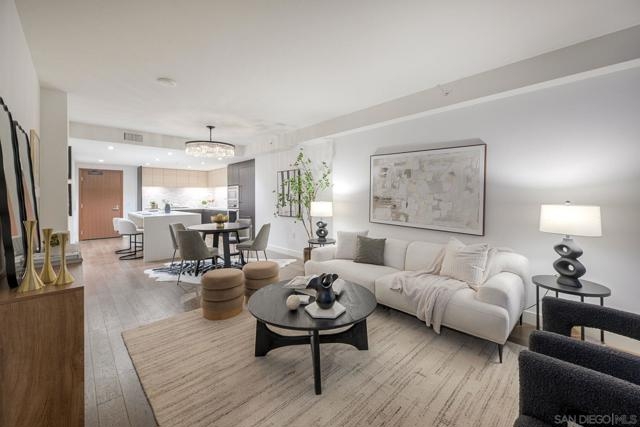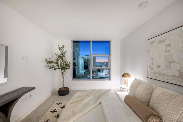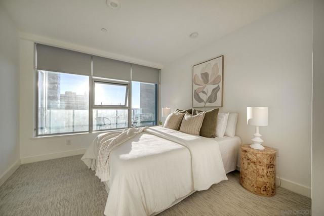 Welcome to Savina – Downtown’s premier luxury high-rise living next to Little Italy and the Bay! This stunning west-facing 2BR/2BA residence sits on the 6th floor, with sweeping bay and city views from every room. The open-concept kitchen features white quartz countertops, Thermador appliances, a spacious island, and ample storage, perfect for both everyday living and entertaining. The primary suite offers a generous walk-in closet, with a spacious 2nd bedroom with bay views. Enjoy sunsets and sparkling city lights from your private balcony. 1 Reserved Parking Spot + 1 Private Storage Room. Hardwood floors throughout kitchen and living room and brand new high end carpets in bedrooms. Residents of Savina enjoy resort-style amenities, including a pool & spa, state-of-the-art fitness center with yoga deck, steam & sauna rooms, a resident lounge, outdoor BBQs, pet retreat, conference room, and 24-hour concierge service.