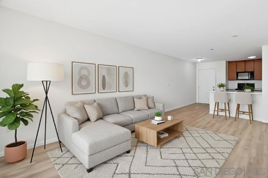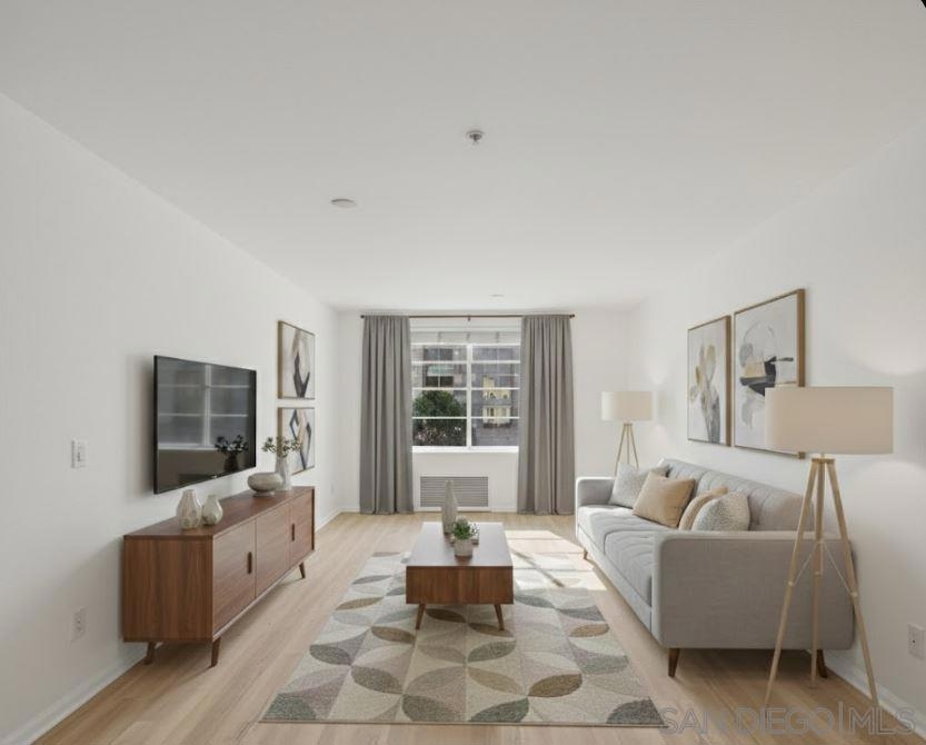 Live in the heart of Little Italy and WALK EVERYWHERE!!! One of San Diego’s most vibrant and popular neighborhoods! Step outside and stroll to boutique shopping, incredible dining, the Saturday Farmers Market, the train and trolley, Balboa & Petco Parks. This coveted location blends urban convenience with the charm and energy that make Little Italy so desirable. Inside, this NEWLY-RENOVATED, 4th-floor condo sits in an ideal southwest position, inviting in the best natural light throughout the day. The SPACIOUS bedroom offers plenty of room for a home office, and the unit includes a full-size washer and dryer for effortless living. The building features a charming courtyard with a BBQ area on the 2nd floor, perfect for relaxing or entertaining--plus a gated, secure parking space. With lower HOA's and immaculate upkeep, this home is the perfect blend of comfort, style, and LOCATION!!!