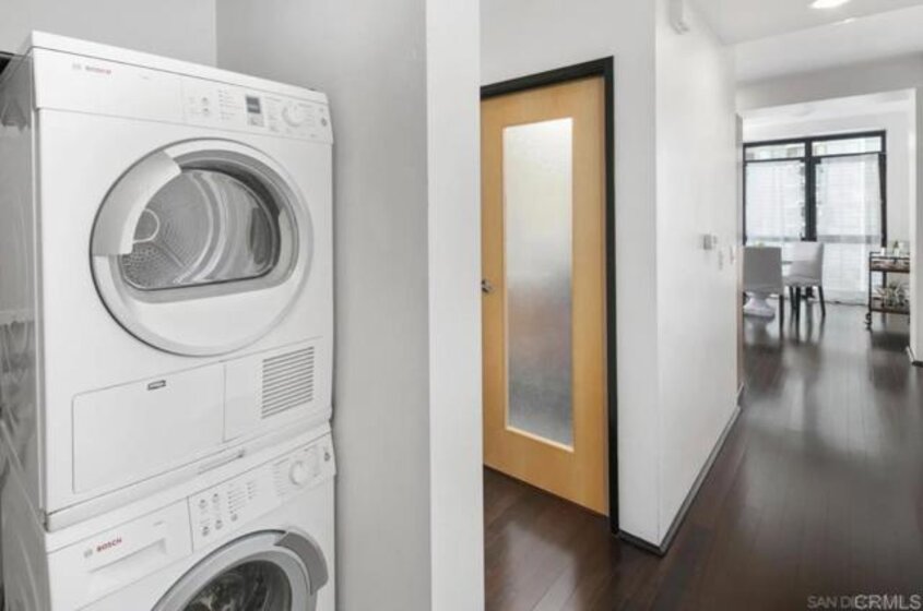 Welcome to this beautifully updated condo in the heart of Downtown San Diego. This spacious 1-bed, 1-bath residence offers a rare opportunity to convert into a 2-bedroom layout, providing excellent flexibility and upside potential. Recent upgrades include fresh interior paint throughout, newly painted patio flooring, a brand-new 3-ton HVAC heat pump ($9,400), and real wood Levelor 2-inch Venetian blinds throughout ($7,800). Additional custom improvements include a built-in bookcase with pull-out desk, thoughtfully designed within unused closet space—ideal for a home office or study area. New electrical outlets and color-matched cover plates enhance the living and dining areas, delivering a clean, modern finish. The open-concept living and dining space is filled with natural light and accommodates multiple layout options, making it perfect for modern urban living. The unit also includes a large, dedicated storage unit, a rare and highly desirable feature in Downtown San Diego. Located in a well-maintained community at 1551 4th Avenue, with easy access to Little Italy, Balboa Park, Gaslamp Quarter, dining, shopping, and entertainment. Ideal for owner-occupants or investors seeking a turnkey property with strong conversion potential.