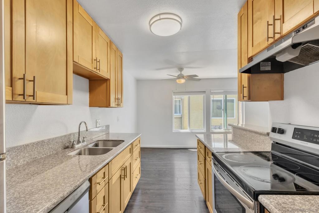 REDUCED & Move-in-ready! Bright & Spacious Upper-Floor Condo in Gated Harbor Vista Community. Discover this updated (2022) one-bedroom, one-bathroom upper floor condo offering a bright and airy upper-floor living space in Harbor Vista community. This home features upgrades, including stainless steel appliances, kitchen and bathroom countertops, and an open-concept layout that maximizes comfort and functionality. All interior paint wall to wall and floor to ceiling just done! Closet in hallway can be converted to washer and dryer in unit if approved by HOA. Many units have been approved. The gated community provides a resort-style pool and spa, on-site laundry facilities, and lushly landscaped common areas. Conveniently located near freeway access, this home is just minutes from downtown San Diego, Balboa Park, and the San Diego Zoo. San Diego International Airport is only seven miles away, while Mission Valley and Fashion Valley shopping centers are within a short 10 min drive. Enjoy easy access to the beaches, Gaslamp Quarter, and Little Italy, with the U.S.-Mexico border just 20 minutes away and Coronado Island only a 10 min drive! Experience comfort, convenience, and accessibility in this well-maintained, move-in-ready home.