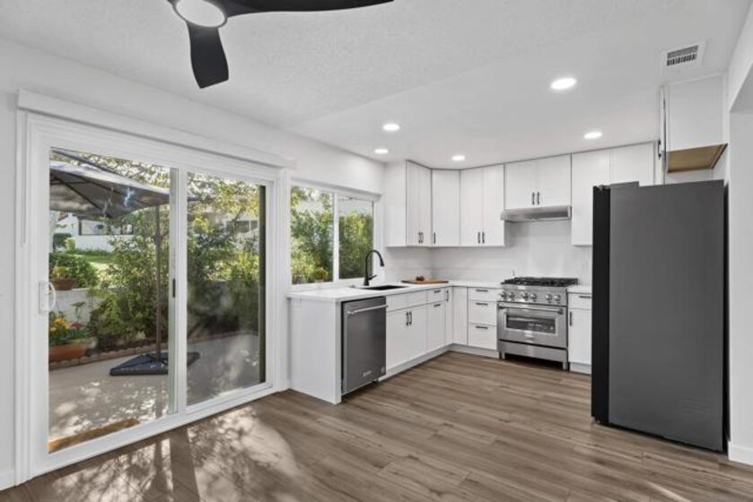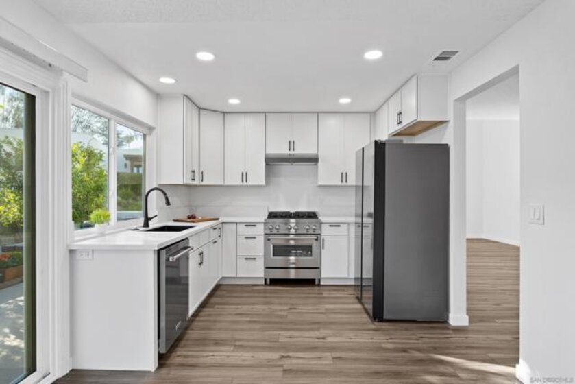 Discover a stunningly remodeled patio home in the vibrant “705 Haciendas” section of Seven Oaks, Rancho Bernardo. Enjoy a tight-knit 55+ community with a top-tier community center offering daily activities. Enter through a private courtyard and a beautifully refinished original front door to freshly painted rooms and clean, sleek ceilings. The modern kitchen features high-end appliances, sleek cabinets, quartz counters, and new recessed lighting. The expansive great room with vaulted ceilings includes a versatile dining area and a spacious living room with an 18-foot sliding patio doors opening to a private back patio with scenic views. Both bedrooms boast new windows and mirrored closet doors, while luxury vinyl plank flooring adds warmth throughout. Two spa-inspired bathrooms, one with an attached laundry room, elevate the experience. Don’t miss your chance to own this gem!