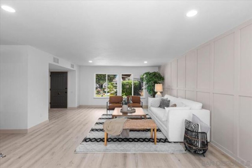 Welcome to this beautifully updated 2 bedroom, 2 bath condo in the highly sought-after Seven Oaks Haciendas, a 55+ community known for its peaceful setting and active lifestyle. This home has been thoughtfully renovated throughout, featuring brand-new dual-pane windows, fresh interior paint, and stylish luxury vinyl plank flooring, gorgeous board and batten wall in living room. The kitchen is completely new, with quartz countertops, shaker cabinets, and stainless steel appliances. Bathrooms are also completely renovated with luxurious finishes. Additional upgrades include a Brand New HVAC system, recently replaced hot water heater offering comfort and peace of mind. The spacious, private patio includes a laundry area, and there’s an adjacent carport plus a separate storage room for golf cart or just extra space for added convenience. Residents enjoy access to a well-equipped community center with a pool, gym, library, and a variety of clubs and classes making it easy to stay active and connected. HOA also covers water, trash, exterior maintenance,This home truly has it all! Don’t miss your chance to make it yours.