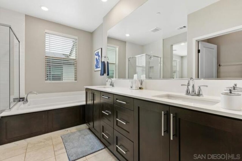 Welcome to this stunning 4-bedroom, 4-bathroom townhome that perfectly blends modern design with everyday convenience. The open-concept floorplan seamlessly connects the living, dining, and kitchen areas—ideal for both comfortable living and effortless entertaining. The contemporary kitchen features top-of-the-line stainless steel appliances and elegant quartz slab countertops. Each bedroom includes its own private bathroom, offering exceptional comfort and privacy for all occupants. Enjoy resort-style community amenities with 14 parks and 11 pools exclusively for residents, plus access to award-winning PUSD schools. Prime location within walking distance to the shopping center, Target, Design 39 Campus, and Del Norte High School, with easy access to I-15. Welcome to stunning 4 bedrooms, 4 bathrooms townhome that perfectly combines modern living with convenience and style. Open floor seamlessly connects the living, dinning and kitchen areas, creating a harmonious space for both living and entertaining. The modern kitchen equipped with top of the line stainless steel appliances and adorned with beautiful quartz slab countertops. Each bedroom comes with its own private bathroom,providing ultimate comfort and privacy for all occupants. Enjoy 14 parks and 11 pools exclusively for residents, award-wining PUSD schools. Walkable distance to shopping center, Target, Design 39 Campus, Del Norte High School. Close to freeway 15.