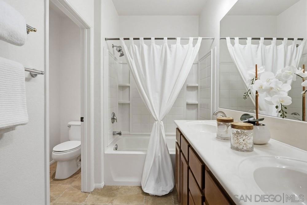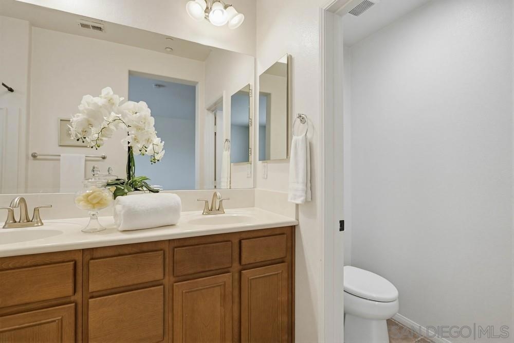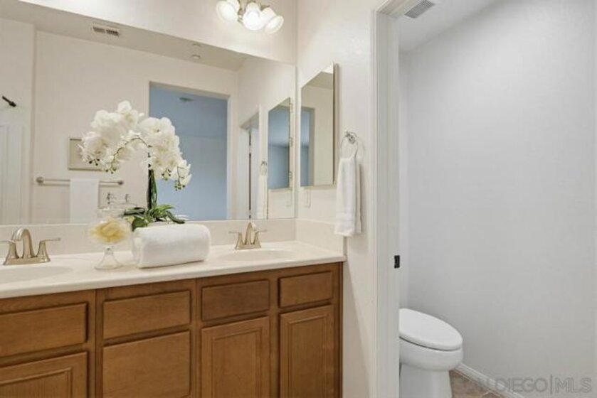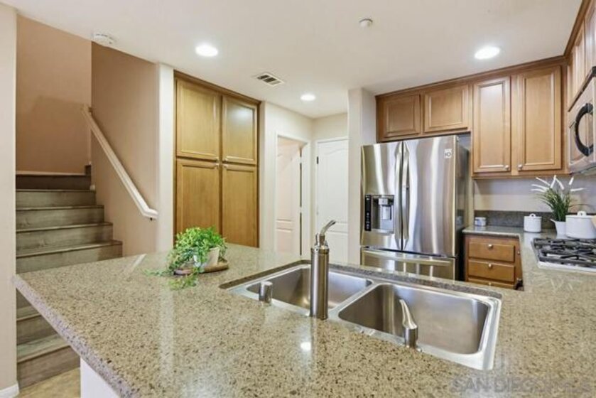 Breathtaking natural light defines the atmosphere of this move-in-ready townhome, situated in the heart of the award-winning Poway Unified School District. Designed with an emphasis on an airy, "light and bright" aesthetic, the residence features an open-concept main floor anchored by durable tile flooring and a chef-inspired kitchen. Sleek granite countertops, a custom backsplash, and premium stainless steel appliances, including a five-burner gas range that make the heart of the home as functional as it is beautiful. A standout advantage of this property is the attached side-by-side two-car garage, a rare find that provides effortless access without the frustration of tandem parking. This functional space also includes ample built-in storage to keep life organized. Upstairs, the home continues to impress with brand-new luxury vinyl plank flooring and a dual primary suite layout. These two generous retreats offer maximum privacy, featuring expansive walk-in closets and spa-like dual-sink vanities. Modern living is further enhanced by integrated smart technology, including a Nest climate system and Ring security, while a private courtyard offers a quiet space for outdoor relaxation. Residents enjoy full access to resort-style community amenities such as a sparkling pool, spa, and social gathering areas. Located just minutes from the scenic trails of Patriot Park and the area’s premier shopping and dining, this home offers a perfectly maintained sanctuary in one of 4S Ranch’s most sought-after locations.
