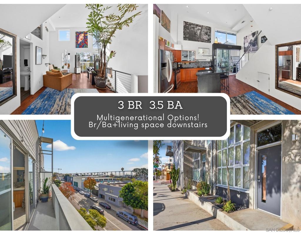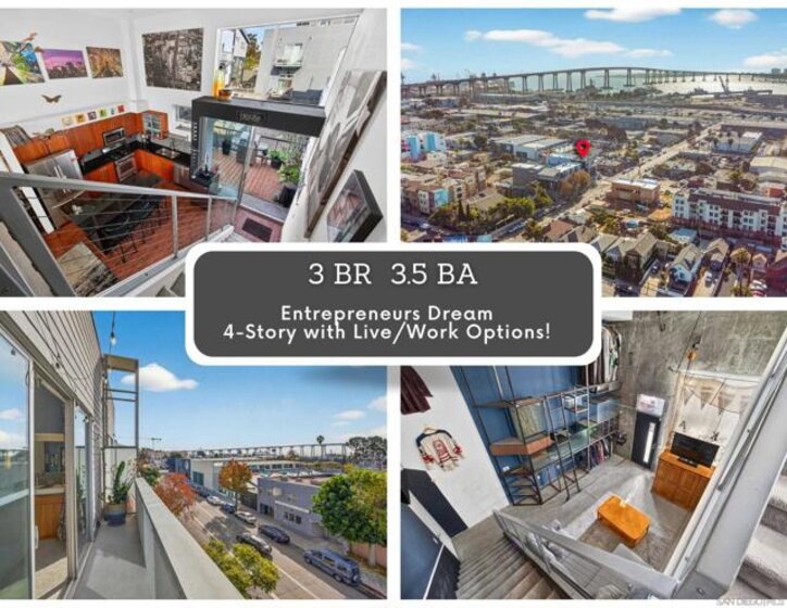 $5,000 credit toward HOA fees or closing costs! 4-level home in Barrio Logan blends architectural drama with urban living. Designed for flexibility, the home offers 3 en-suite bdrms, with one on 1st level and a versatile 2nd floor open space perfect for an office, studio, or 4th bdrm. Defined by 20-foot soaring ceilings, the living room with view balcony is open to the kitchen with large patio. The street level entry space uniquely accommodates a potential client-facing business making it ideal for entrepreneurs seeking a true live/work lifestyle. Take in iconic views of the Coronado Bridge, Downtown SD, Petco Park, and the San Diego Bay from two balconies. All of this can be yours just moments from breweries, restaurants, and the Mercado grocery store, with effortless access to the San Diego Convention Center and Petco Park. Completing the home is a private two-car garage with stacked parking capability or storage via a power lift system & FREE electric charging option. A rare and distinguished offering in one of San Diego’s vibrant and walkable neighborhoods—where design, flexibility, and lifestyle converge.