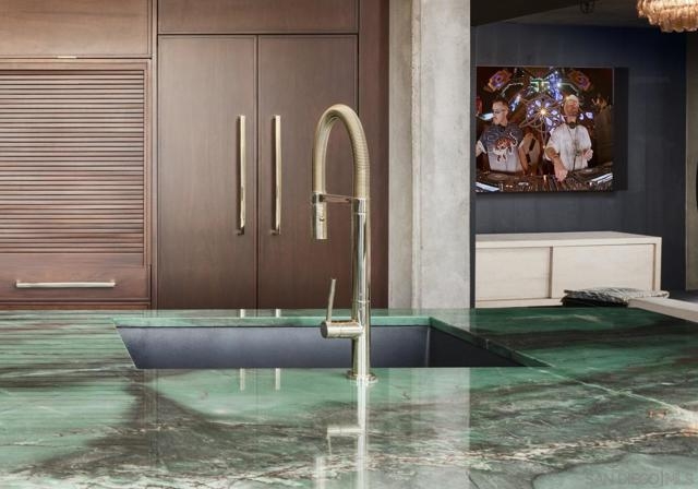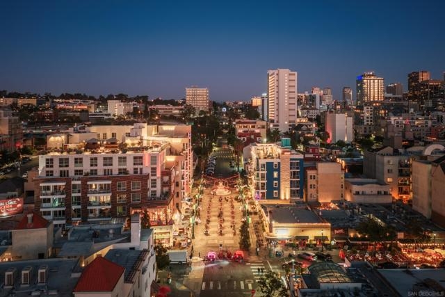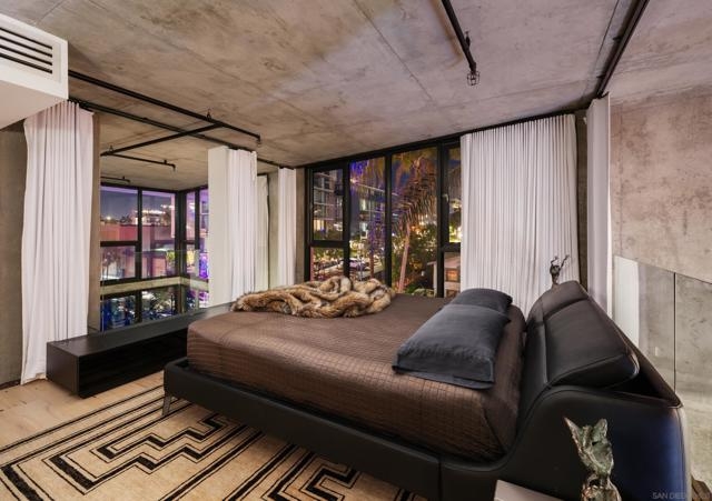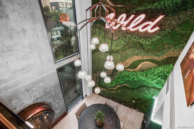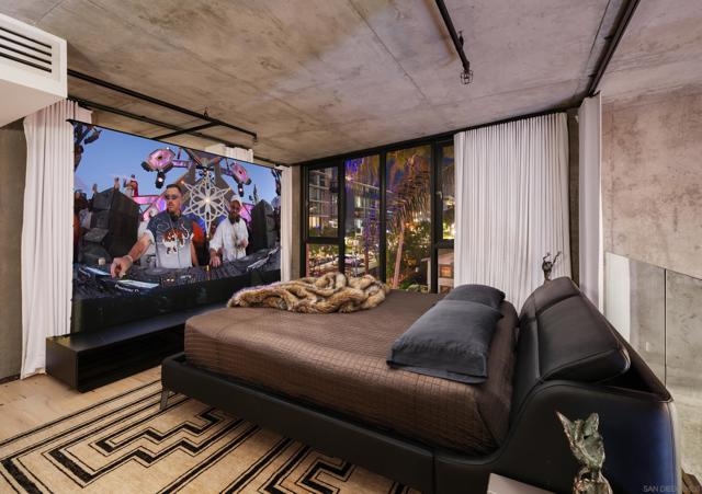 Welcome to DOMA’s most iconic residence! — In the heart of Little Italy with award-winning restaurants, vibrant farmers markets and the bay front, just steps from your front door. This stunning corner unit boasts a generous wraparound balcony with sweeping city and ocean views. Exquisite features include: dramatic 18-foot double vaulted ceilings, exposed concrete walls, expansive floor-to-ceiling windows, Villa Barcelona hickory wood floors with Rosso Levanto marble borders and brass inlays, an 18 foot living moss wall and halogen tech lighting including a stunning entry fixture designed by the renowned Isamu Noguchi. The home is fully automated with the finest technology: Savant home automation of all audiovisual systems, lighting and custom automated drapery with retractable window screens. The center kitchen is a chef’s dream, outfitted with integrated Fisher & Paykel appliances, a Brazilian quartzite floating island and custom African mahogany cabinetry. Ascend the diamond metal plate staircase to an open-air primary retreat with custom-forged iron & glass railings and custom automated drapery throughout. and a custom walk-in closet by California Closet Designs. An AWOL Vanish Laser TV remains fully contained in custom cabinetry when not in use, preserves the unobstructed views of Little Italy from the bedroom. The bathroom sanctuary boasts Calacatta Viola marble countertops, a standalone soaking tub, a walk-in shower and a separate toilet room. The home is furnished with designer pieces from Roche Bobois and RH for a flawless finishing touch! This exceptional residence includes two oversized side by side underground parking spaces and a rare and valuable 170-square-foot storage room. Residents of DOMA enjoy top-tier amenities, including a fully equipped fitness center, rooftop terrace with barbecues & sweeping ocean views, secure bicycle storage, and a stunning lobby enhanced by a state-of-the-art access control system. DOMA stands proudly in the heart of Little Italy — offering what is arguably Downtown San Diego’s most coveted address.