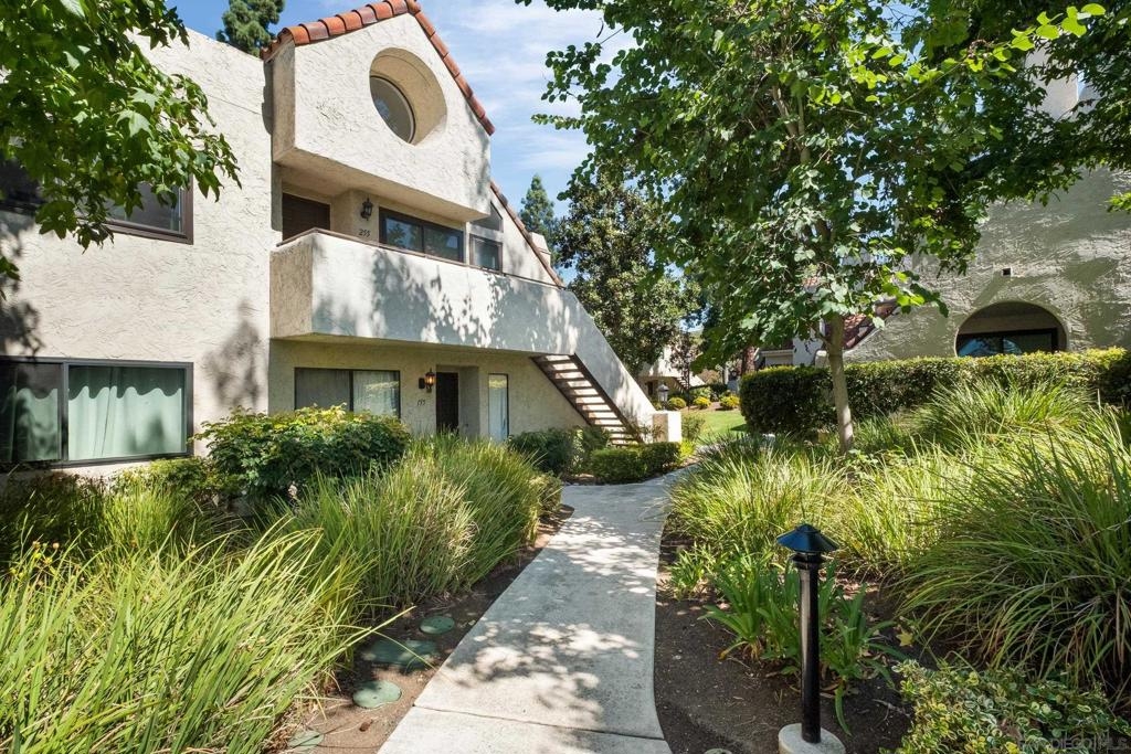 Welcome to this stunning upper end-unit condo in the highly desirable Bernardo Pines community! This light-filled 2 bed / 2 bath home features soaring vaulted ceilings in the family room, creating a spacious and airy atmosphere.The beautifully updated kitchen showcases crisp white cabinetry, stainless steel appliances, a modern range hood, subway tile backsplash, recessed lighting, and stylish pendant lights over the bar top. Additional highlights include laminate flooring throughout, a convenient full-size laundry closet, and abundant natural light. Perfectly located near freeways, shopping, dining, and recreation, this home offers the ideal blend of comfort and convenience.