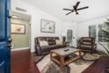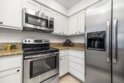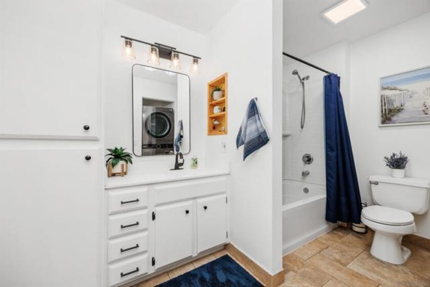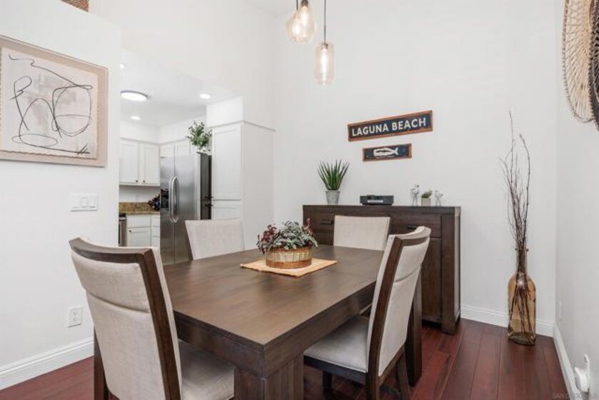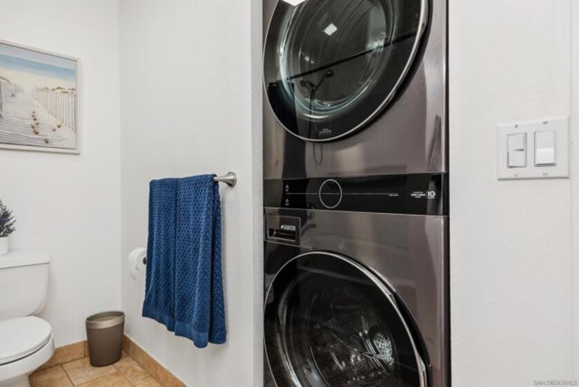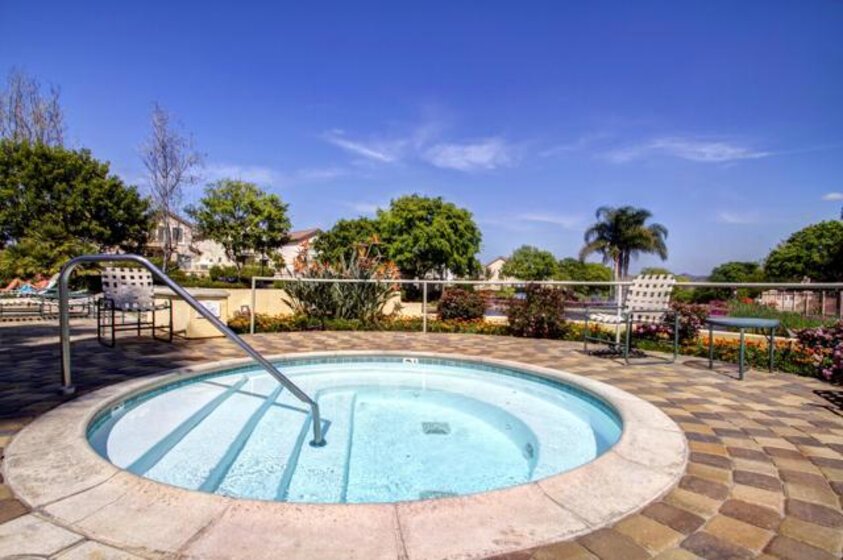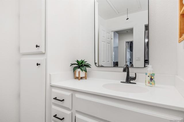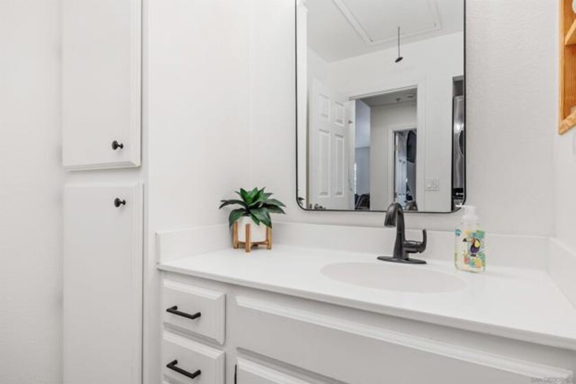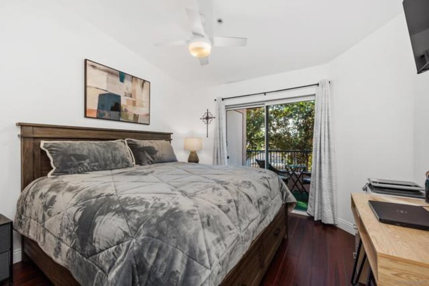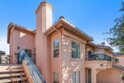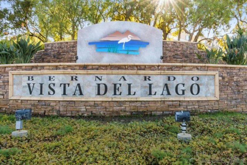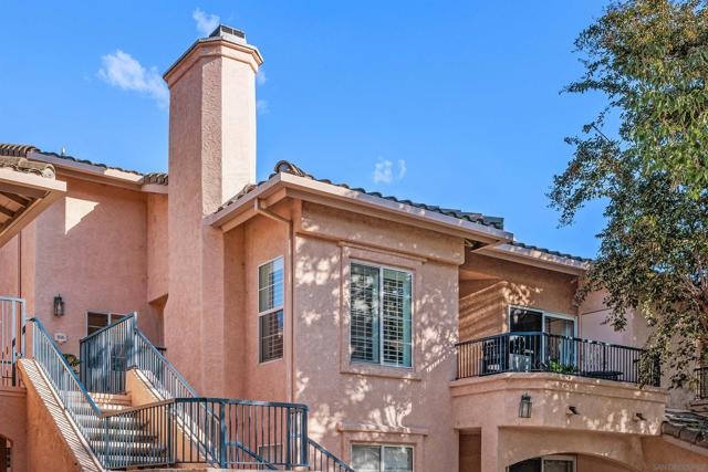 Approximately 716 square feet, this one-bedroom, one-bathroom top floor condominium features a spacious and charming layout with abundant natural light and inviting architectural details. The home boasts dark bamboo flooring throughout the living areas and primary suite, complemented by custom mosaic ceramic tile in the kitchen and tile in the bathroom. The bright and cheerful interior is enhanced by ample cabinetry, stainless steel appliances and a cozy fireplace, creating a warm and welcoming atmosphere. The primary suite offers a large walk-in closet with built-ins, providing excellent storage space. The bathroom is similarly spacious, with upgraded lighting and fixtures. In unit laundry for convenience. The home's exterior showcases lush landscaping, a spacious balcony with scenic views of the greenbelt and mature trees, offering a private and serene retreat. The community amenities are resort-style, featuring pools, spas, a fitness center, tennis courts, pickleball, a recreational room and a clubhouse near a picturesque pond. The gated community also provides assigned parking in front of the building, as well as plenty of guest parking, ensuring convenience for residents. Ideally located with easy freeway access and close to shopping, this condominium offers a comfortable and well-appointed living experience. Acclaimed Poway Unified Schools.