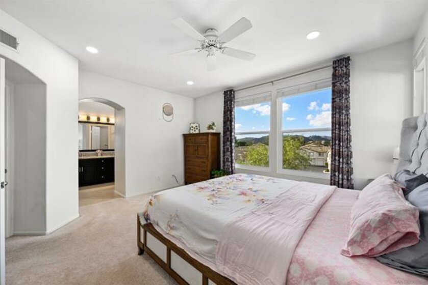Come check out this fabulous 2 story, 2 bed, 2.5 bath townhome located in the desirable Bernardo Vista Del Lago community! This beautiful property features high beam ceilings, a master bedroom suite with walk-in closet, custom tile and hardwood flooring, dual pane vinyl windows, washer and dryer, central heating and A/C! The kitchen and bath were all updated a few years ago, appointed with granite countertops, soft close expresso cabinets, kitchen stainless steel appliances incl. 5 burner stove/deep kitchen sink & more! The Kitchen nook doubles as a granite bar/office area while there are expanded cabinets for extra storage. 2 car garage and PLENTY of guest parking. You will enjoy the outdoor space with covered patio and beautiful views! Access to the beautiful Bernardo Vista Del Lago Recreation Center which includes 2 pools, fitness center, clubhouse, tennis courts and a stunning common area!