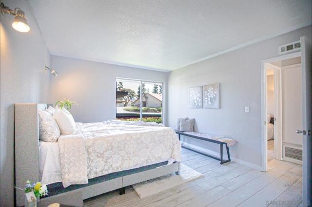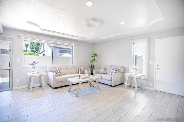 Stylish 2BR/1BA condo with 840 sq ft and a modern gray palette. Features new laminate flooring, updated finishes, in-unit laundry, and a private patio. Community offers a pool. Close to shopping, dining, freeways, and just minutes to the coast!