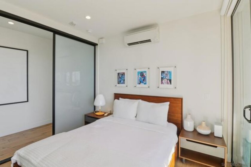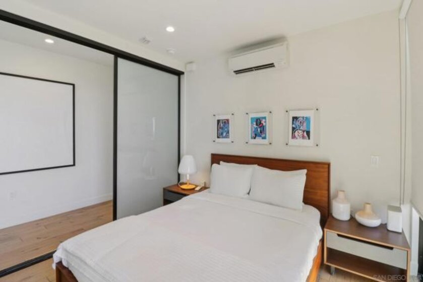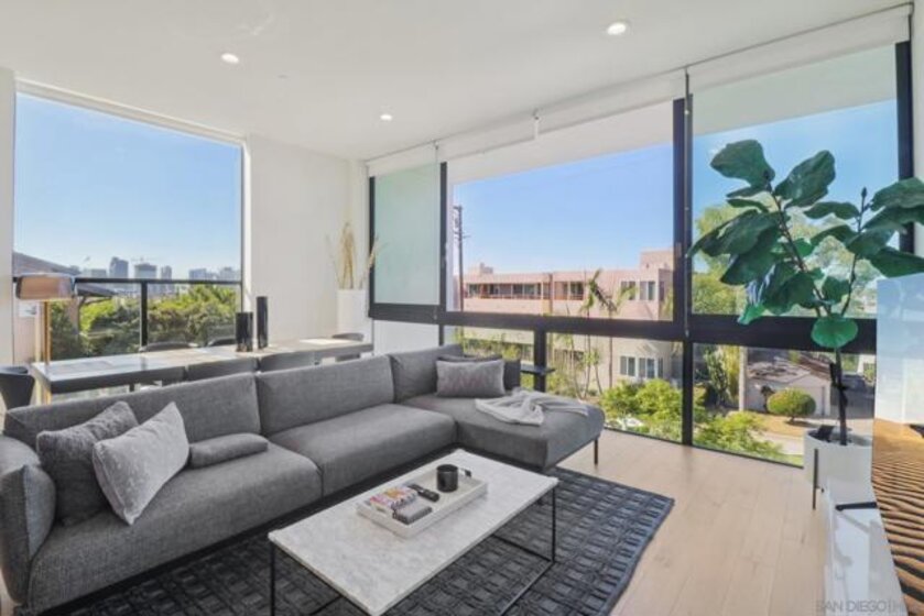 Discover modern luxury living in the heart of Bankers Hill! This exceptional residence at Hangar 5 offers the perfect blend of contemporary design and inviting warmth, all within moments of San Diego’s best urban amenities. Filled with natural light, the open-concept floor plan is anchored by an impressive 11-foot Fleetwood wall of glass, creating a seamless indoor-outdoor connection and framing stunning bay and city views. Thoughtfully appointed with hardwood floors throughout, quartz countertops, high-end cabinetry, and stainless-steel appliances, this home exudes sophistication and comfort. Additional features include gated underground side-by-side parking, a private oversized storage unit, and convenient elevator access. Located on a quiet, tree-lined street yet just minutes from Balboa Park, Little Italy, top dining, and shopping. This residence defines the ultimate Uptown lifestyle, a serene, low-maintenance retreat in one of San Diego’s most vibrant neighborhoods. Rarely available, this unit is approved for short-term rentals, offering exceptional flexibility and strong income potential, an outstanding opportunity for both homeowners and investors alike.