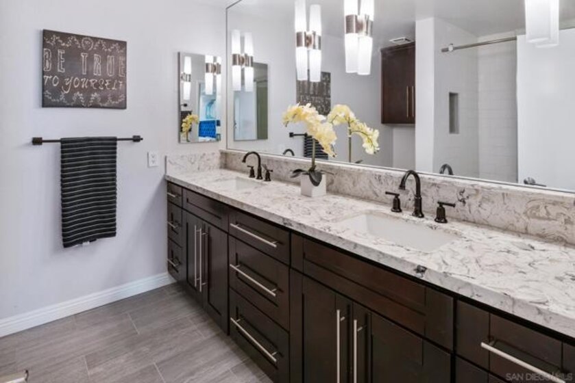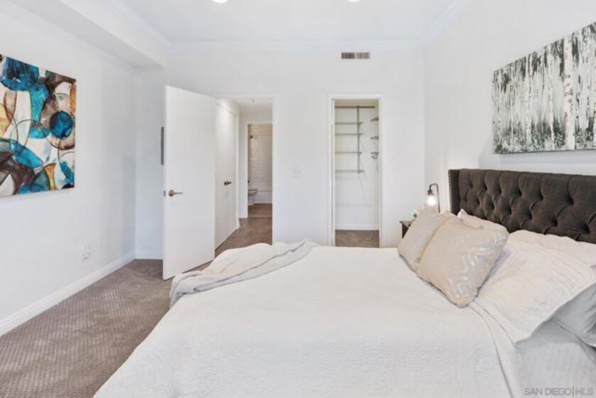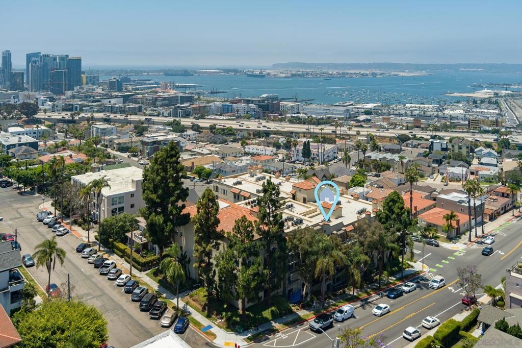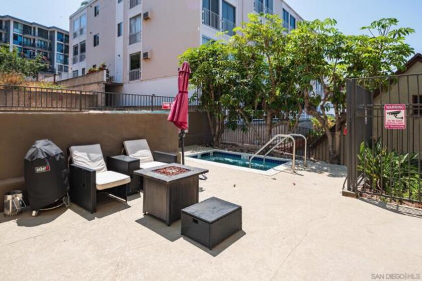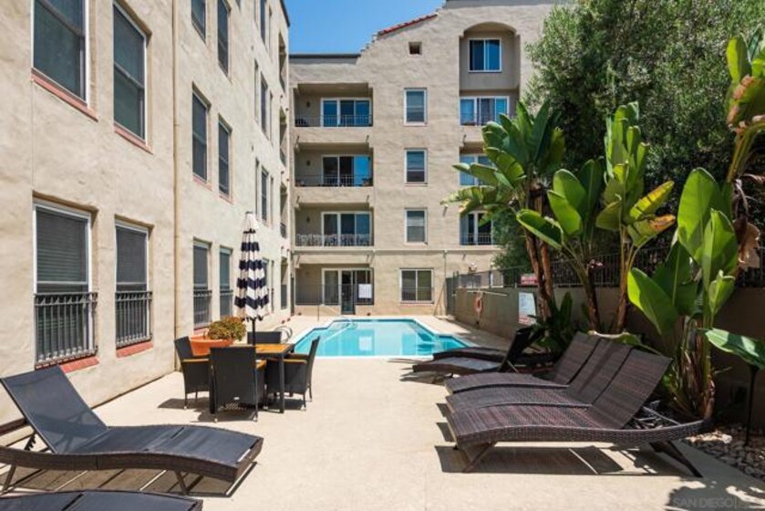 Welcome to luxurious urban living in the heart of Bankers Hill, where this spacious 2-bedroom, 2-bathroom condo offers the epitome of comfort and convenience. Boasting the largest floor plan in the building, this residence is designed for those seeking ample space and modern elegance. Upon entering, you're greeted by an open layout that seamlessly integrates the living, dining, and kitchen areas with a private balcony and fireplace. The kitchen is a chef's dream with high-end stainless steel appliances, complemented by a modern farm sink featuring a convenient touchless faucet. Sleek countertops and ample cabinetry provide both style and functionality. Located in highly desirable Bankers Hill, residents enjoy the convenience of walking to nearby attractions such as Little Italy, Balboa Park, and Waterfront Park. The building amenities include a refreshing pool, relaxing jacuzzi, and a well-equipped fitness room, catering to both relaxation and active lifestyles. Both bedrooms are generously sized, each featuring its own bathroom. The primary bedroom offers a luxurious shower, offering a spa-like retreat within your own home. The second bedroom features a jacuzzi tub with shower, a large built-in desk, and a spacious walk-in closet, ideal for those who work from home or need extra storage. Throughout the condo, you'll find wood laminate flooring, recessed lighting, and crown molding, creating a contemporary ambiance. Two reserved parking spots with additional storage complete this offering, ensuring convenience and security for your vehicles and belongings.