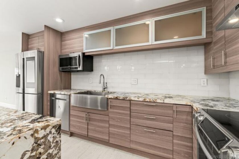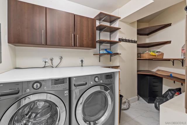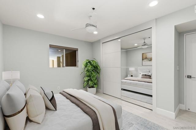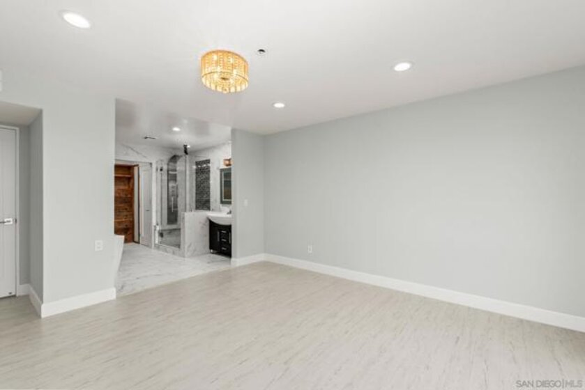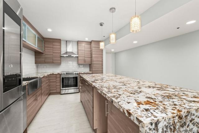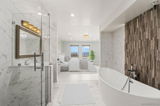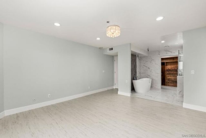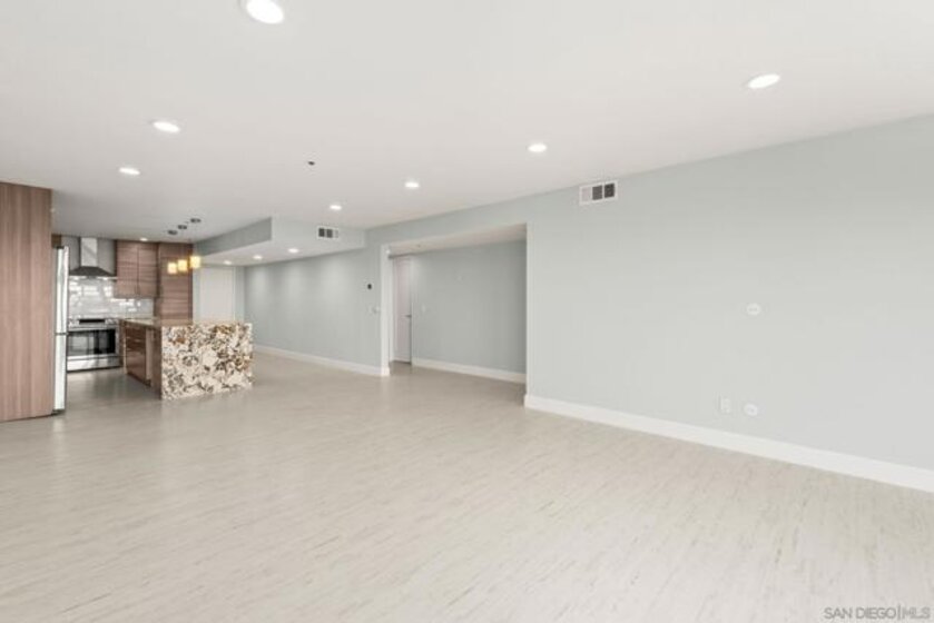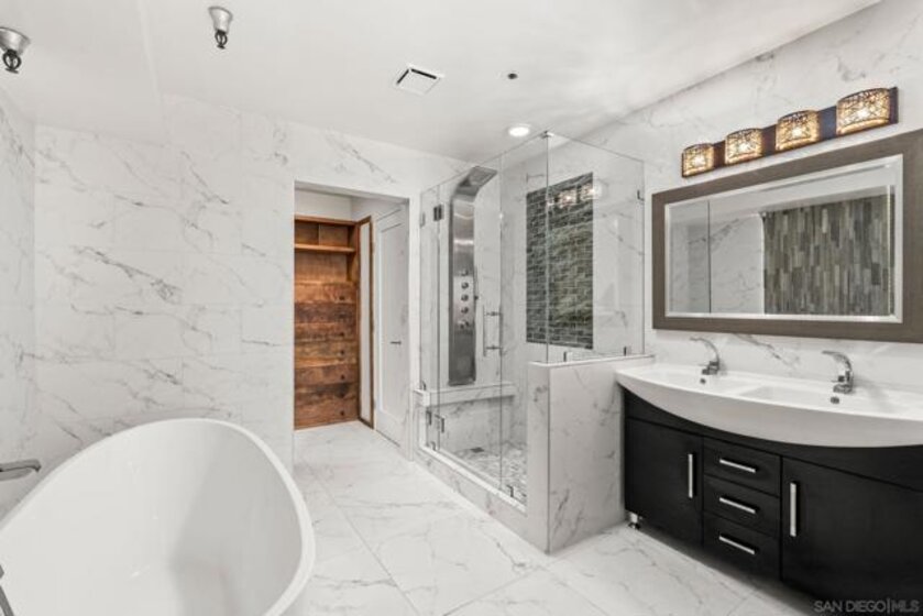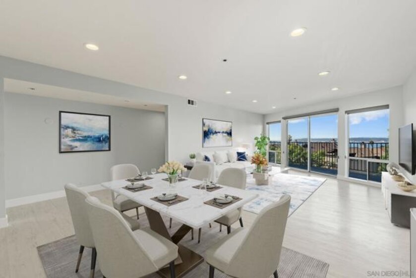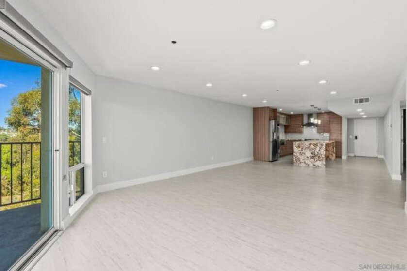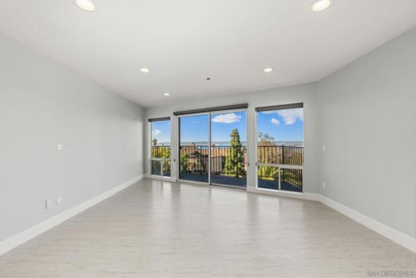Experience elevated urban living in this beautifully reimagined 2BR/2BA Condo offering sweeping 180° Bay views from the glittering Downtown skyline to Point Loma. The spacious open layout showcases a chef’s kitchen anchored by a dramatic 10-foot granite cascading island, custom cabinetry, and premium SS appliances. The living and dining areas open to a large west-facing balcony where sunset bay views and airplane landings steal the show. The serene primary suite features peaceful bay views, a spa-inspired bathroom with a soaking tub, walk-in shower, marble & mosaic tile accents, plus a custom-designed walk-in closet. The generously sized second bedroom offers comfort and privacy for guests or office use with an adjacent stylish guest bath, finished with marble and designer tile. Throughout the home, enjoy luxury vinyl flooring, custom lighting, abundant in-unit storage, and the convenience of a full laundry room. All this in a perfectly positioned, well-maintained building, features solar panels for an almost zeroed out SDGE bill, steps from top restaurants, boutiques, cafés, and more.