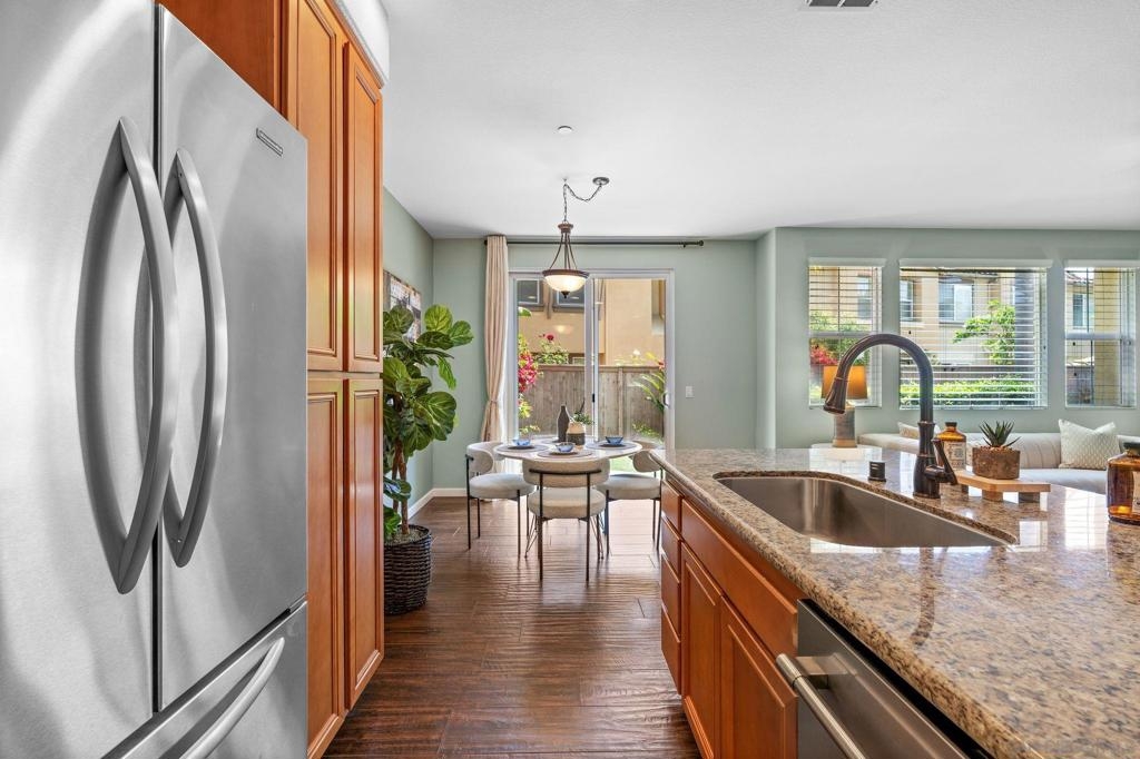 Exquisite 3 Bedroom, 2.5 Bath Townhome In The Prestigious Gated Courtyards At Escala, Mission Valley’s Crown Jewel. Built In 2004, This Elegant Residence Captivates With A Sun Drenched, Open-Concept Main Floor Adorned With Tile Flooring, Expansive Windows, A Natural Gas Fireplace, And A Half Bath. The Kitchen Is Sure To Delight, Boasting Granite Countertops, Stainless Steel Appliances, And Refined Finishes. Entertain Effortlessly In The Spacious, Low-Maintenance Private Yard, Featuring A Seating Patio, Mature Landscaping, A Serene Water Fountain, Artificial Turf And Natural Gas Barbecue Connection For Seamlessly Blending Indoor And Outdoor Living. Upstairs, The Luxurious Primary Suite Offers An Updated Ensuite Bath With Glass Shower Encloser, Large Vanity With Dual Sinks, A Separate Makeup Vanity, And A Generous Walk-In Closet. Two Additional Bedrooms Are Generous in Size And Share A Well-Appointed Full Bath. Addional Home Features Include Central Heat And Air Conditioning, Dual-Pane Windows, Window Coverings, Ceiling Fans And Two Single-Car Garages With Direct Access. Escala’s Exclusive Amenities Elevate Your Lifestyle, Including An Olympic-Size Salt Water Lap Pool, Scenic Spa, Two Tennis Courts, A Well Appointed Gym, A Stylish Clubhouse, A Sprawling Dog Park, A Kids’ Playground, Community BBQs, And On-Site Guard. Perfectly Situated Near Mission Valley’s Vibrant Dining, Shopping, And Entertainment, This Sophisticated Home Is A Rare Opportunity To Own In One Of San Diego’s Most Coveted Communities.