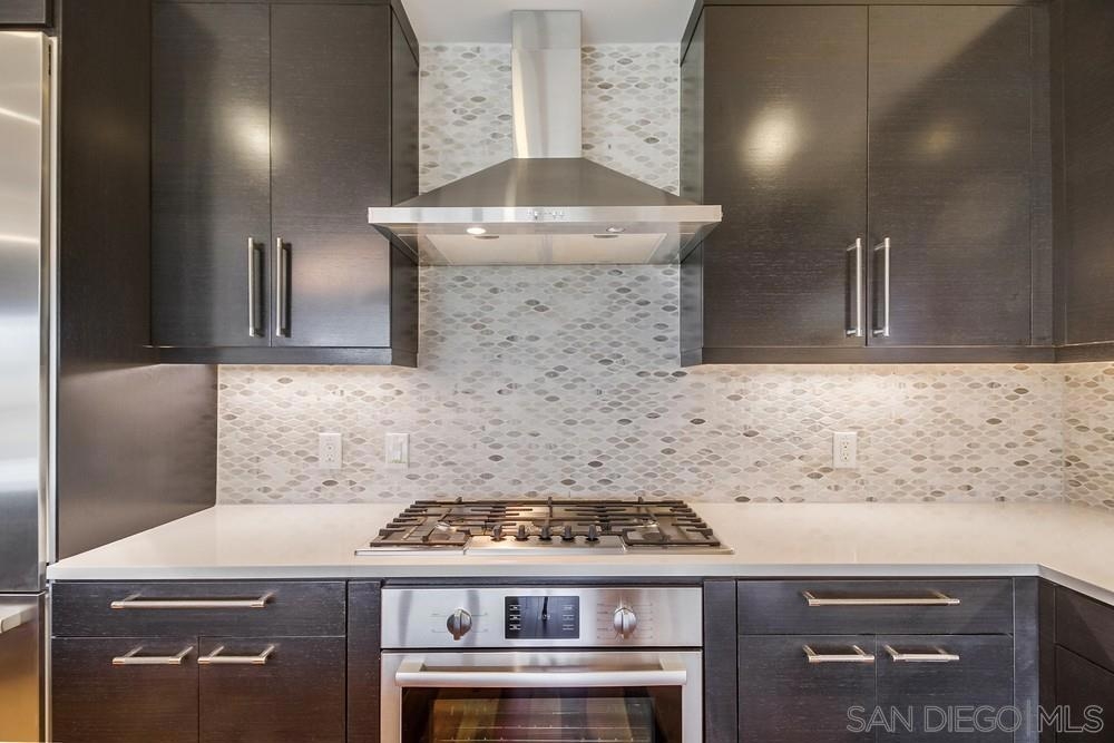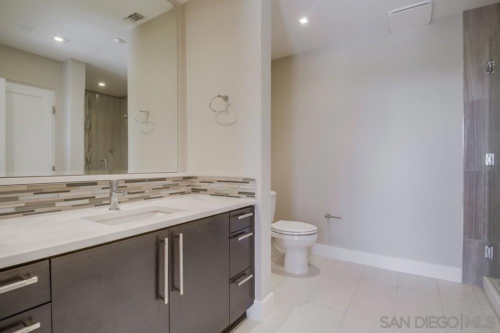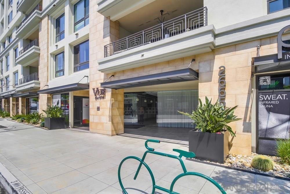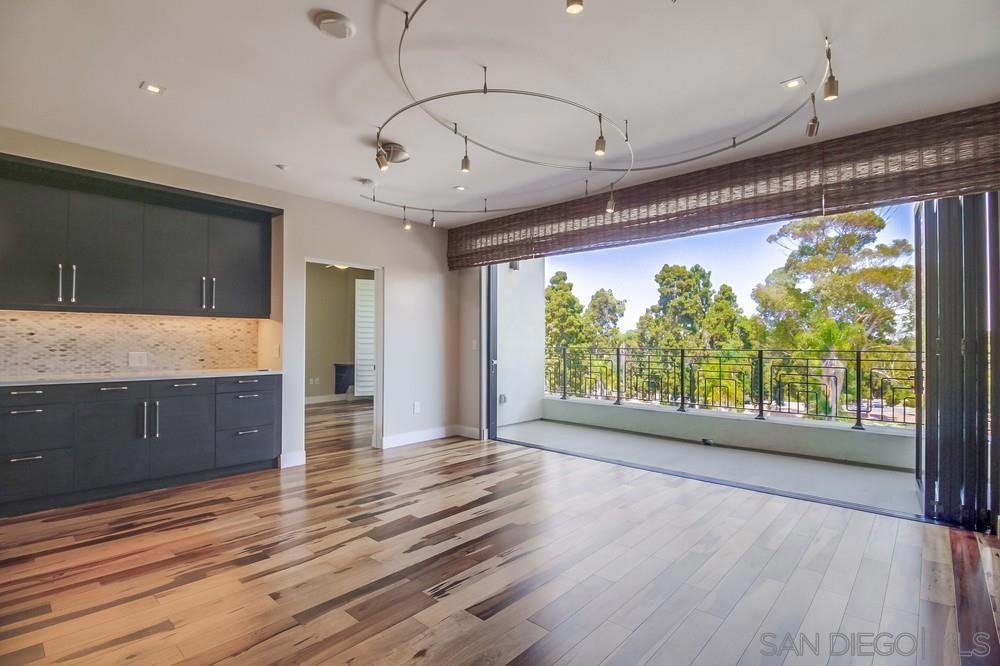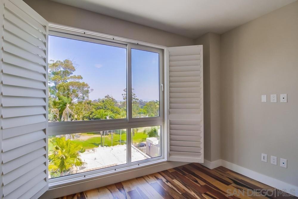 Perfection on the Park: perfect in every detail. East facing on 6th floor with tree top views of Balboa Park and CA tower from all living areas and balcony. This home was design by a former custom home builder whose attention to detail is amazing. Extensive upgrades include pecan hardwood floors, kitchen island has granite with waterfall edge, extensive custom lighting throughout, custom designed built-in wine cooler with cabinets, extended banks of kitchen cabinets, primary bedroom built-ins: bookshelves and bedside tables widened to support CA King bed, custom backsplash in both bathrooms – sink and shower, CA Closet built-ins in Primary closet and guest closet, 4 inch shutters in both bedrooms, valence and two automatic screens (bug and solar) at accordion door, CA Closet Murphy bed in second bedroom, custom wallpaper at entry and accent wall, and EV charger.