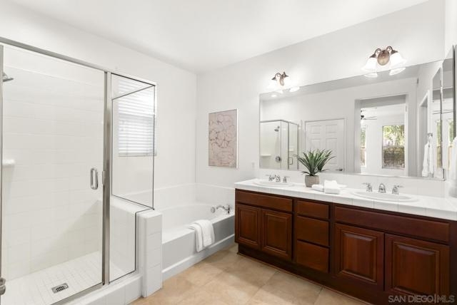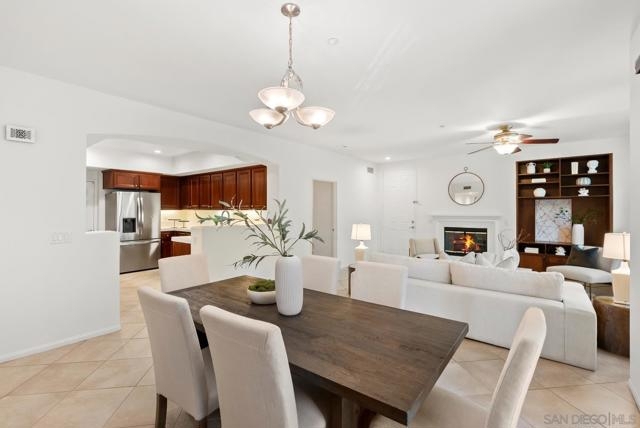 Single-level living meets effortless style in this 3-bedroom, 2-bath condominium in The Verandas at Escala. This sought-after floor plan features open living and dining areas anchored by a cozy fireplace. French doors extend the space to a private garden patio, with a covered veranda perfect for morning coffee, evening gatherings, or simply unwinding outdoors. The kitchen offers generous cabinetry and counter space, while the primary suite provides a retreat of its own with dual sinks, a soaking tub, and a separate shower. Everyday ease is enhanced by a full laundry room, abundant storage, and direct garage access. Residents of the gated Escala community enjoy resort-style amenities including two sparkling pools, a spa, fitness center, two lighted tennis/pickleball courts, basketball hoops, a clubhouse, playground, picnic areas, on-site management, and a dog park. All of this comes with a prime central location near Snapdragon Stadium, Fashion Valley, shopping, dining, and freeway access—offering an ideal blend of comfort and convenience.