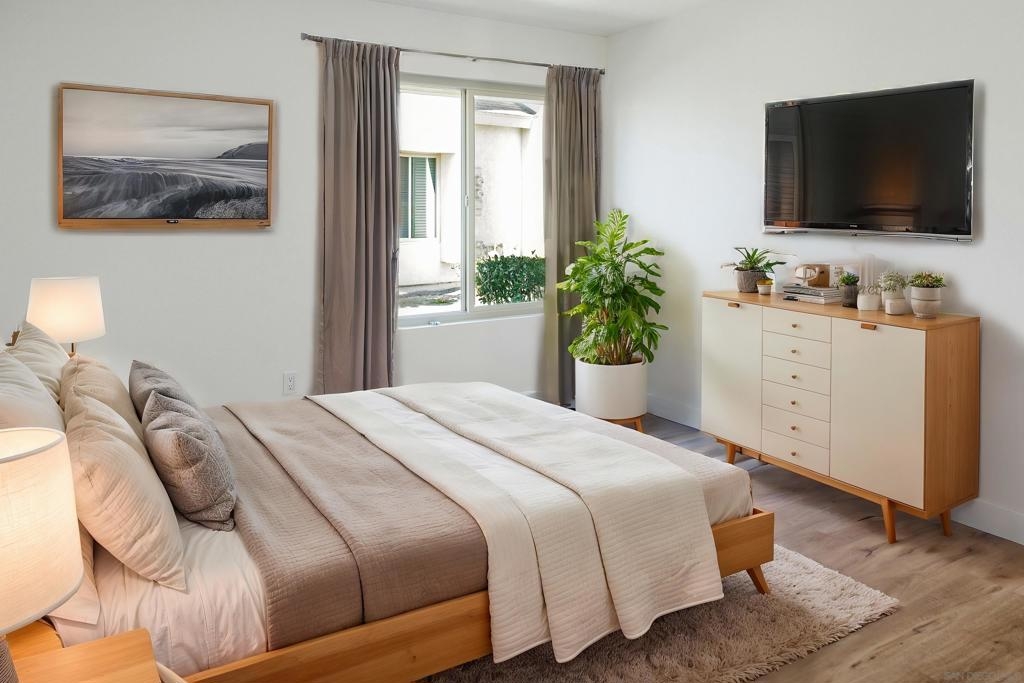 Discover this beautifully remodeled single-story, 2-bedroom, 1-bathroom home in the sought-after Paradise Hills community. Boasting 840 square feet of light and bright living space, this open-concept gem features modern vinyl plank flooring throughout. The updated kitchen shines with brand-new stainless steel appliances, ample storage, and direct access to a private patio, perfect for outdoor dining or relaxing. With a new HVAC system, comfort is guaranteed year-round. This home includes two parking spaces—one assigned space and one carport—and offers access to the community pool. Conveniently located near freeways, shopping centers, restaurants, parks, and more, this property combines style, comfort, and prime location. Don’t miss your chance to make this move-in-ready home yours!