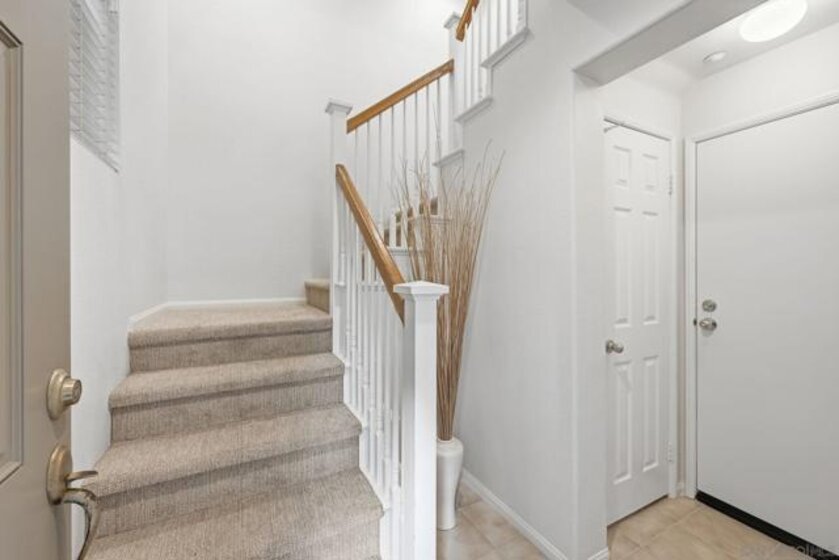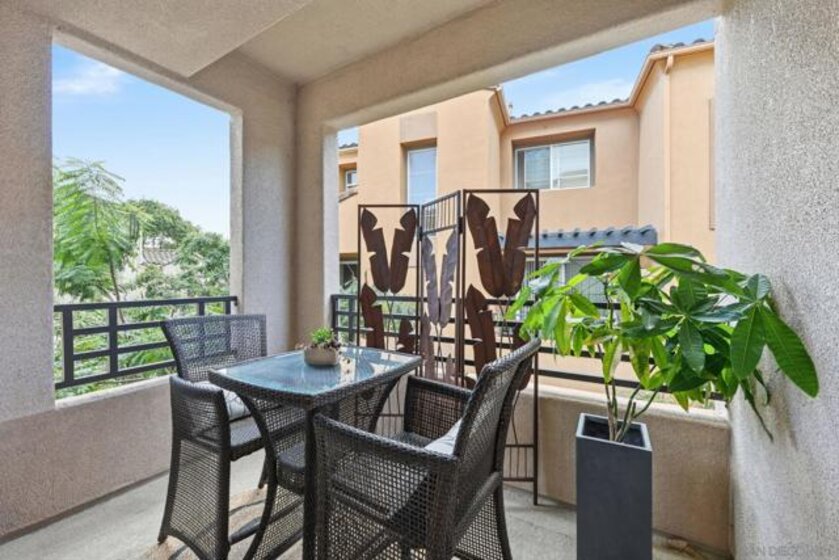 Tucked within the gated community of Bridges at Escala, this home offers both privacy and convenience—just minutes from beaches, shopping, dining, downtown, freeways, and Snapdragon Stadium. The well-designed layout features an open-concept main level with an island kitchen, dining area, and living room filled with natural light. One bedroom and full bath are located on the second level, while two ensuite bedrooms occupy the third—providing flexibility and privacy for guests or family. Recent updates include new carpet, fresh interior paint. The home also includes laminate flooring on main level, a two-car attached garage and a prime location set back from traffic and surrounded by trees for a tranquil feel. Residents enjoy Escala’s resort-style amenities with pools, spa, clubhouse, fitness center, and tennis courts.
