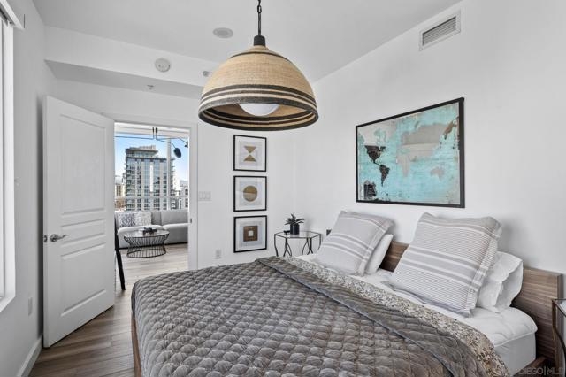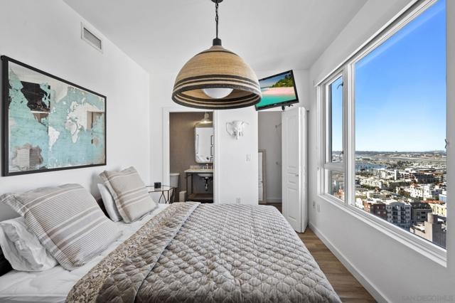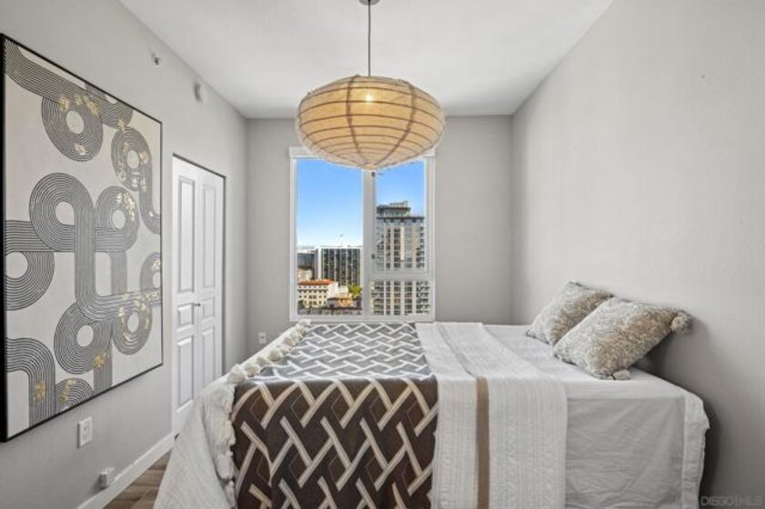 Perched on the 18th floor in the heart of Little Italy, this residence at La Vita delivers the turnkey lifestyle everyone wants but rarely finds. This prime northeast corner home is fully renovated with thoughtful, modern finishes and an abundance of natural light pouring through walls of glass. Enjoy sweeping city views with westerly pop-outs that capture sunsets and the sparkling bay — the perfect backdrop for morning coffee or evening wine. The open-concept layout lives larger than its footprint, offering a refreshed kitchen, updated flooring, designer lighting, and a seamless indoor/outdoor connection from your private balcony. Both bedrooms are positioned for privacy, and the primary suite features its own view corridor and generous closet space. La Vita is one of Little Italy’s most desirable addresses with low HOA dues and resort-style amenities including a pool, spa, lush courtyard, fitness center, clubhouse, and 24-hour security. Step outside and you’re seconds from world-class dining, the Farmer’s Market, cafés, boutiques, and the waterfront. Turnkey. Elevated. Walkable. This is the Little Italy lifestyle at its best.