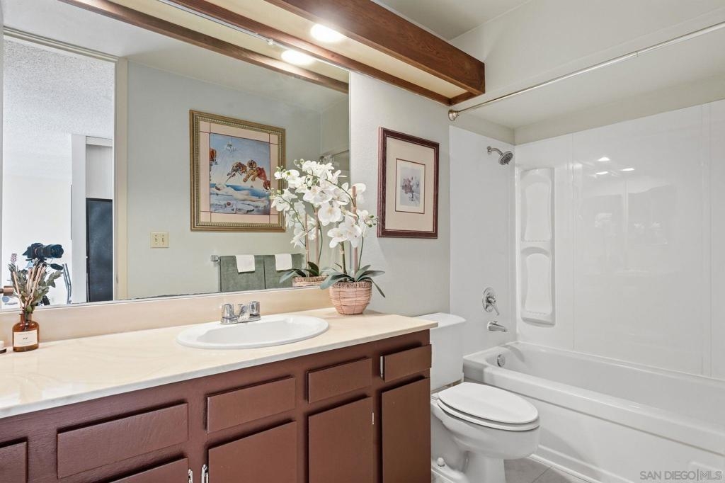 Welcome to Pacific Isle, a secure, resort-like community nestled in the vibrant Point Loma area. This highly sought-after top-floor unit offers an ideal sense of privacy with no neighbors above and a desirable outdoor-facing layout that floods the space with natural light while showcasing views of the beautiful Point Loma Peninsula. From the moment you step inside, the home feels open, bright, and welcoming. The unit has been meticulously updated, featuring a completely renovated kitchen and bathroom with modern finishes, fresh paint throughout, and reconditioned floor-to-ceiling windows. It’s truly a move-in-ready home that has been thoughtfully maintained and even includes a storage unit! Pacific Isle offers a stunning array of amenities that truly elevate the living experience. Imagine lounging by a resort-style pool, gathering with friends in a spacious community room outfitted with a pool table and ping pong table, or enjoying a match on one of the two full tennis courts or the beach volleyball court. Fitness enthusiasts will appreciate the dedicated men's and women's fitness centers, complemented by a relaxing steam room and sauna. The courtyard is a peaceful retreat, featuring a gentle stream that meanders through the lush landscaping and tranquil walking paths, creating an atmosphere reminiscent of a private tropical paradise. Convenience is key, as Pacific Isle is strategically located just moments away from San Diego's finest beaches, the bay, Liberty Station, a variety of restaurants, shopping, and the airport. The perfect coastal lifestyle!
