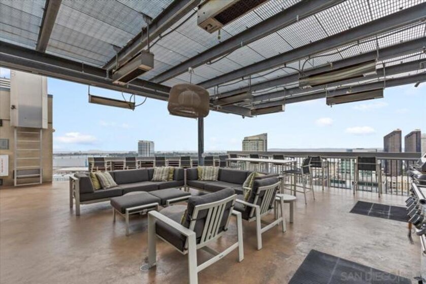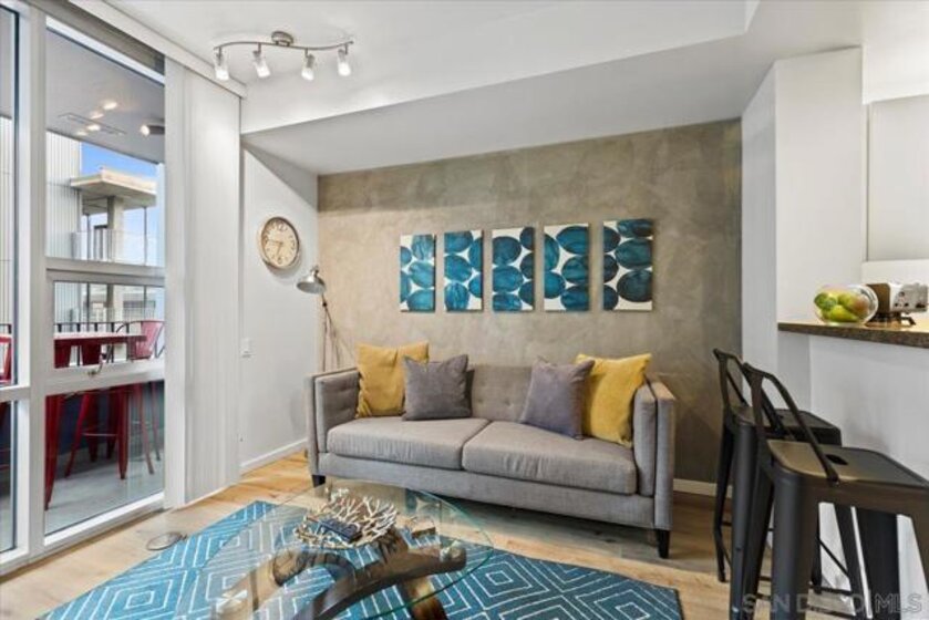 Welcome to ICON, where refined urban living meets iconic San Diego views. Perched on the 10th floor, this beautifully appointed residence is bathed in natural light while enjoying a desirable, quiet courtyard orientation with views stretching toward the Coronado Bridge and the Pacific beyond. Luxury vinyl plank flooring enhances the open-concept living space, seamlessly connecting to a generously sized private patio—perfect for morning coffee or evening city lights. The designer kitchen showcases modern fixtures, stylish finishes, and a timeless neutral palette, complementing the well-designed floor plan. Offered furnished, this residence presents an exceptional opportunity as a primary home, executive retreat, or weekend escape in the heart of downtown. Residents of ICON enjoy premier amenities including the rooftop Skybox Lounge with panoramic views, BBQ terrace, fitness center, clubhouse, movie room, and 24-hour front desk security—all just steps from Petco Park, vibrant dining, and the best of the Gaslamp Quarter.