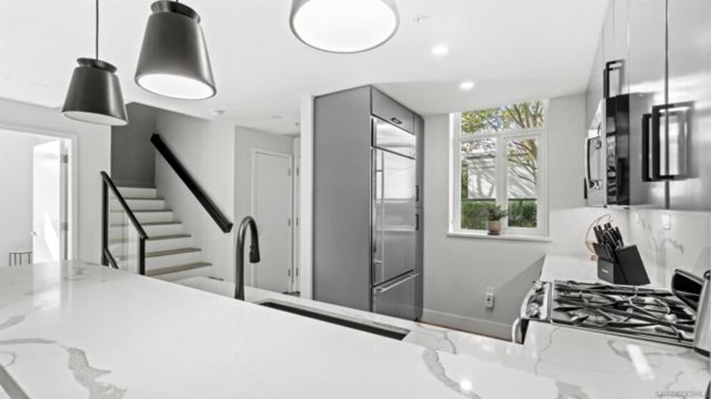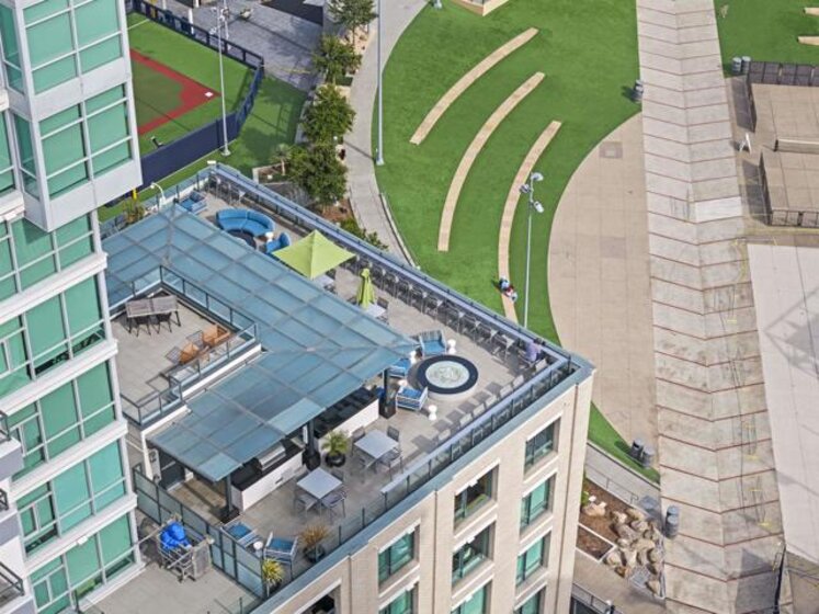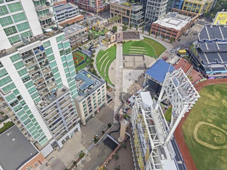 Rarely available townhome at The Legend—lives like a single-family home with four private patios and panoramic views straight into Petco Park and the concert stage. Fully renovated in 2022, this luxury corner residence features a designer kitchen, open living areas, guest bath, two ensuite bedrooms, and a loft leading to the rooftop patio. Includes two parking spaces, motorcycle spot, and private storage, with option to be sold fully furnished. Enjoy 24-hour security, concierge, gym, sauna, pool, BBQ areas, and the iconic 7th-floor deck overlooking Petco Park.