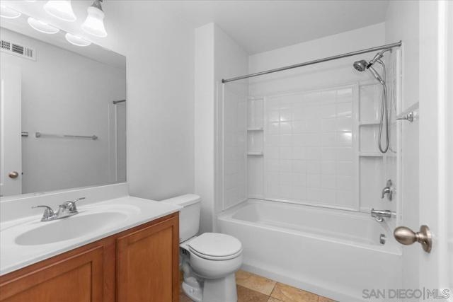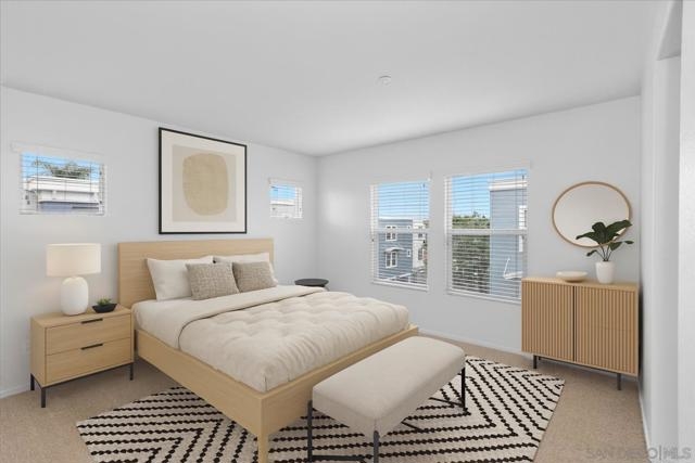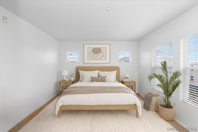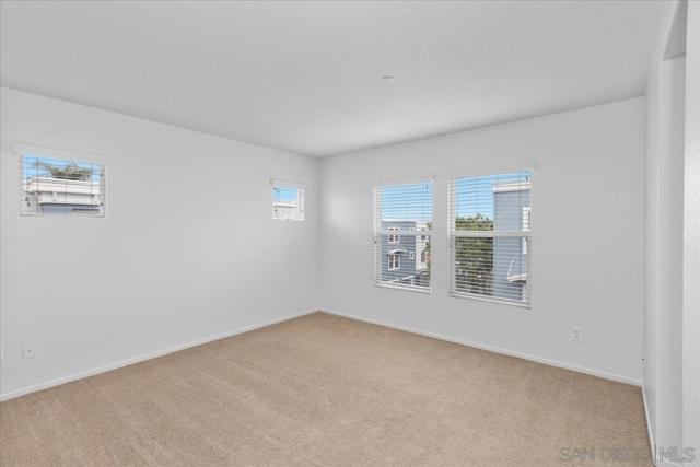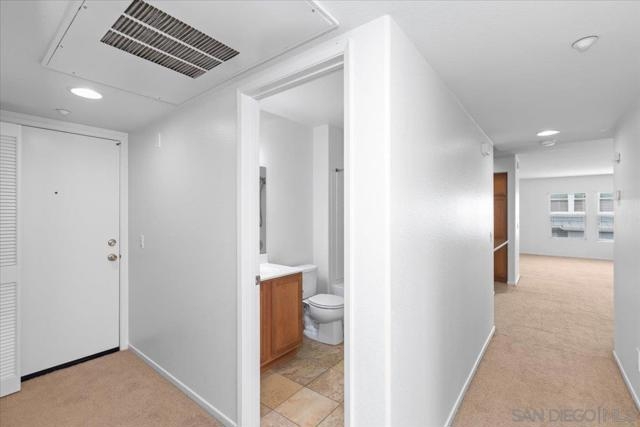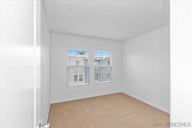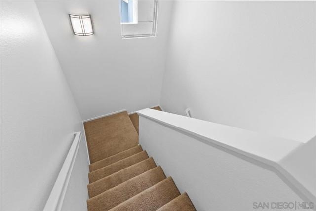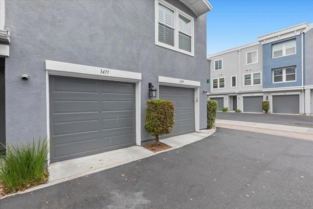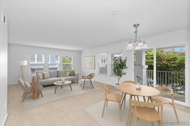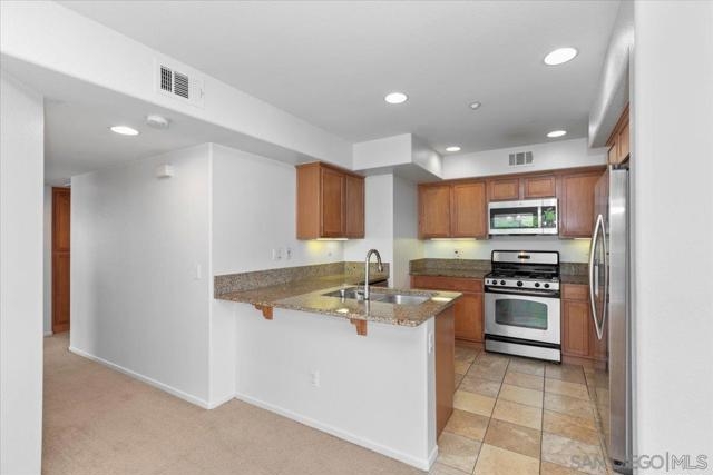 Rarely available! This 3 BR 2 BA, end-unit penthouse is located on the top floor and is truly move-in ready. Featuring a gorgeous kitchen with granite countertops, stainless steel appliances along with an open floor plan. Enjoy a gorgeous outside patio/deck with nice views. This home is freshly painted and has abundant natural light, a newer full-size washer and dryer, and a spacious two-car attached garage with direct access. The well-maintained complex offers a gated entry, sparkling community pool, and a play area for kids—all with a low monthly HOA. walk to shopping and close to Sea World and beaches. Hurry!