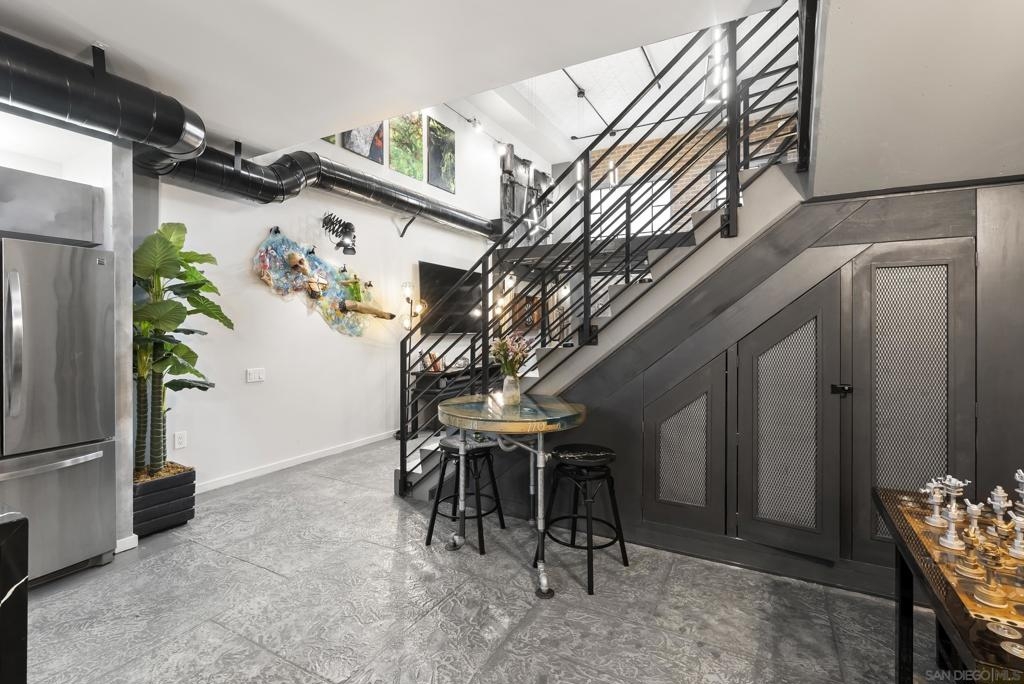 Urban edge meets creative flexibility in this distinctive two-level loft at ICON, set in the heart of East Village. Designed for those seeking more than a traditional condo, this adaptable live/work residence offers both street-level access and interior lobby entry, making it ideal for a private studio, office, or dynamic residential space. Soaring ceilings and an open main level create an impressive setting for entertaining or working, while the upper-level bedroom retreat provides privacy, comfort, and separation from the living space. ICON is one of downtown San Diego’s most architecturally striking communities, known for its modern design and full-service lifestyle. Residents enjoy 24-hour security and concierge service, onsite property management, a fully equipped fitness center, media room, secure underground parking with one assigned space, and signature social spaces including the exclusive Community Skybox with rooftop viewing terrace overlooking Petco Park. The 5th Inning Community Lounge features stadium-style seating, large-screen TVs, a catering kitchen, pool table, and indoor-outdoor gathering areas, perfect for game days and private events. Just steps from Petco Park, the Gaslamp Quarter, dining, nightlife, and downtown events, this rare offering delivers unmatched versatility, energy, and access in one of San Diego’s most vibrant urban neighborhoods.