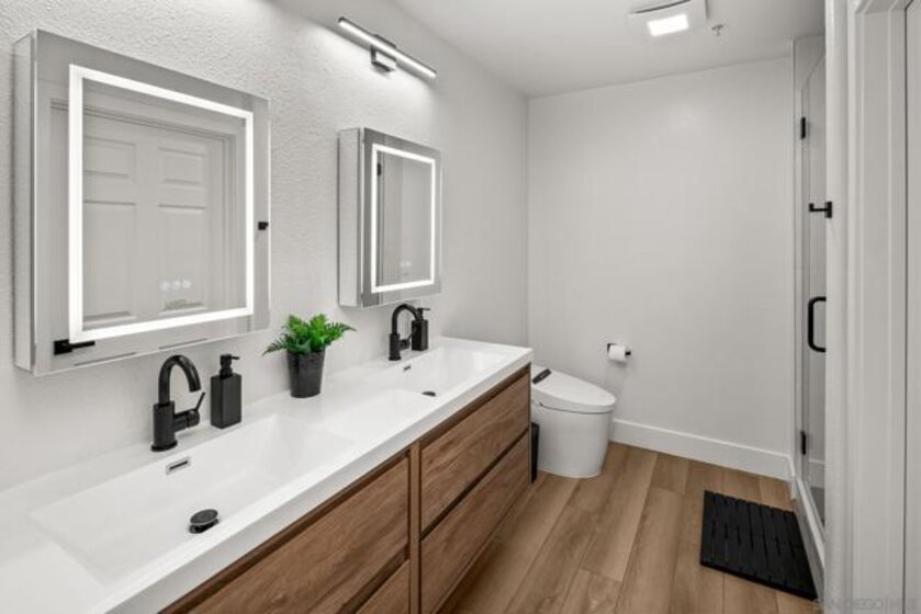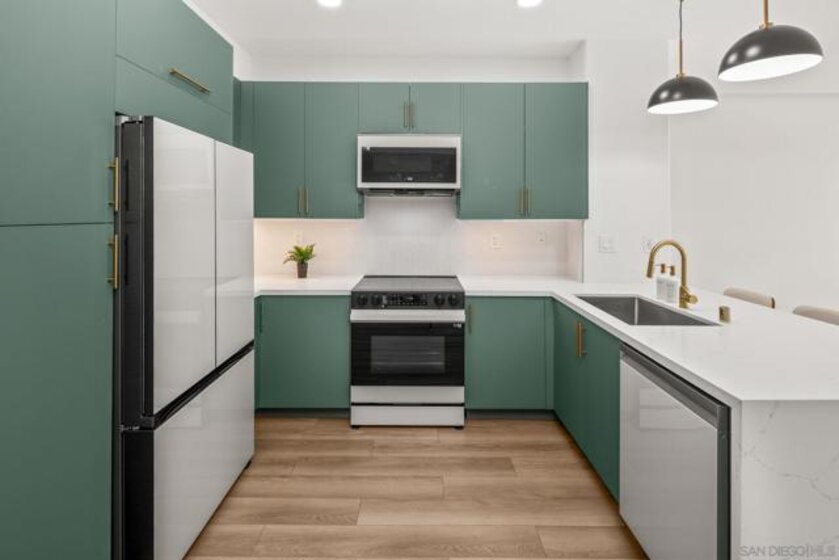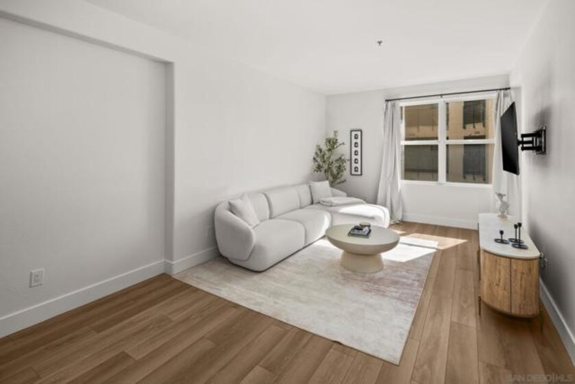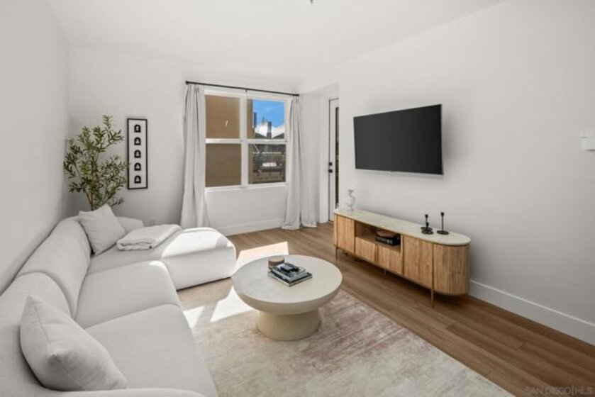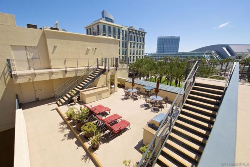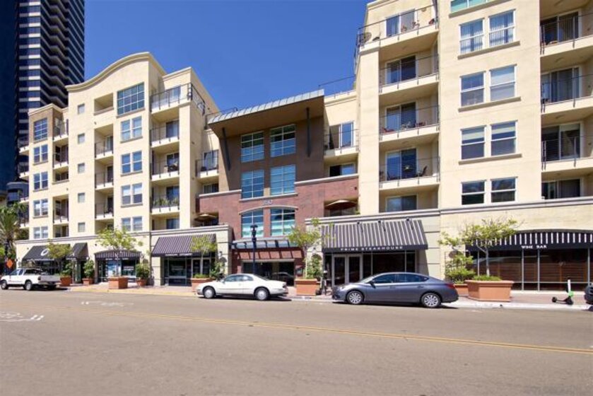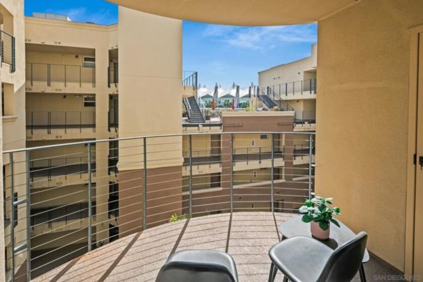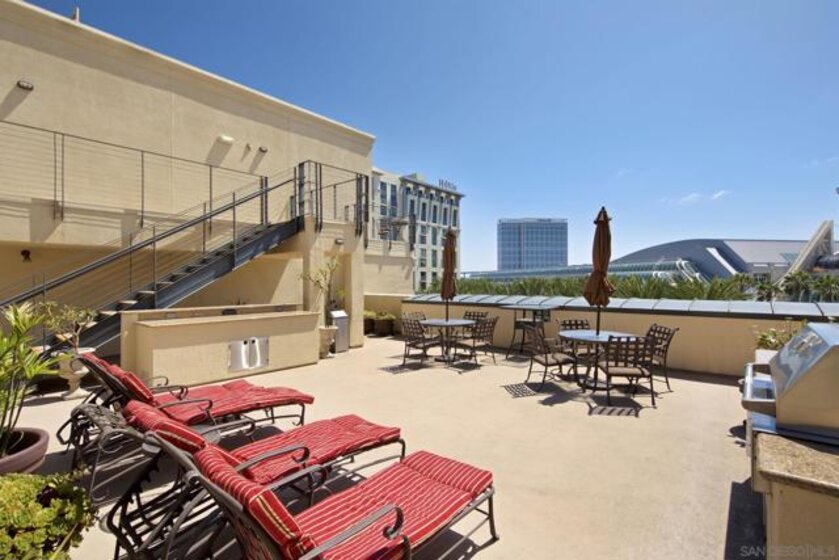 Welcome to luxury urban living in San Diego’s prestigious Marina District, directly across from the Convention Center. This newly remodeled 2-bedroom, 2-bath residence offers a bright, open floor plan. The stunning kitchen features new cabinetry, quartz countertops, and Samsung Bespoke appliances. The spacious primary suite includes a beautifully remodeled bathroom, with gorgeous tiled shower and generous walk-in closet. Enjoy indoor-outdoor living on your private balcony overlooking the Convention Center, complete with additional storage closet. Highlights include central heating and air conditioning, in-unit washer and dryer, and two exclusive gated parking spaces. The secure building offers electronic access, two elevators, and convenient trash chute. Residents enjoy premium amenities including a fitness center, game and community room, rooftop lounge with BBQ area, and inviting spaces for relaxation and entertaining. HOA dues include water, sewer, trash, common area maintenance, and high-speed Google Fiber internet, creating a truly turnkey downtown lifestyle opportunity. This is not one to miss!