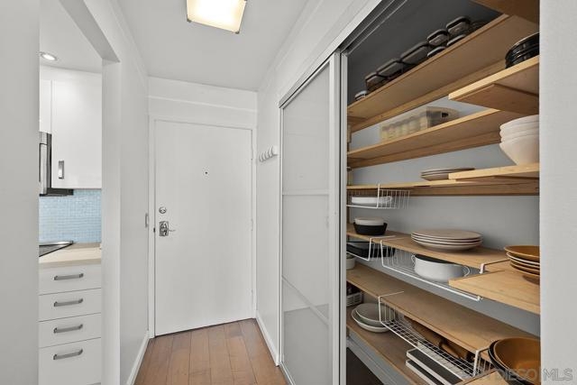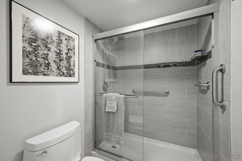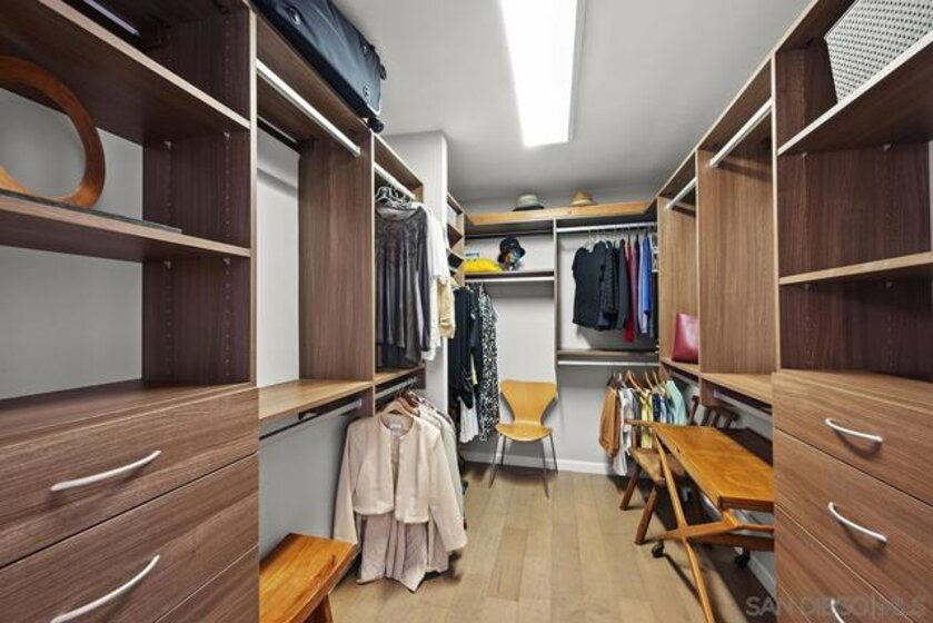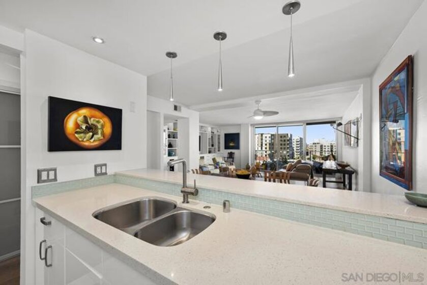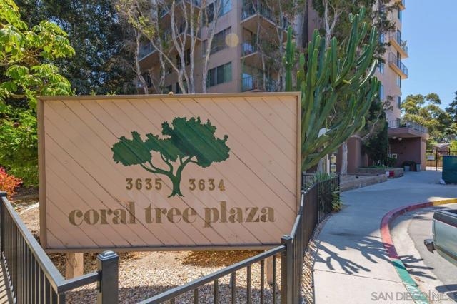 Embrace vibrant city living in this light-filled northwest-corner residence at Coral Tree Plaza, where airy spaces and modern style define everyday comfort. Sunlit and inviting, the expansive living area features sleek engineered wood flooring, custom built-ins, and seamless access to an oversized balcony—an ideal spot to entertain or simply savor San Diego’s signature climate and peaceful city views. The kitchen shines with quartz counters, subway-tile backsplash, contemporary white cabinetry, Bosch appliances, recessed and pendant lighting, a large pantry, and tile flooring. Originally a 3-bedroom layout, the generous bonus den/office currently is open to the living area now for an expansive great-room feel, yet easily re-enclosed should you wish to restore a true third bedroom. The primary suite includes a spacious custom walk-in closet, complemented by a convenient wall of built-ins concealed behind mirrored doors that catch and reflect the day’s sunset. The tastefully updated bath features quartz counters, dual vanities, thoughtfully designed cabinetry, and a walk-in shower. The guest bath offers a modern pedestal sink, stylish sconce lighting, a walk-in shower, and ample built-in storage. In addition to a dedicated laundry closet, you'll find a large utility closet offering even more storage. Other highlights include side-by-side parking near the elevator and a dedicated storage cage. Just moments from Balboa Park and some of Hillcrest's best establishments, this condo balances the comfort of a home retreat with the vibrancy of city life. As one of Hillcrest’s long-established residential communities, Coral Tree Plaza offers generous grounds and a well-maintained collection of amenities. Residents enjoy a swimming pool and spa, convenient on-site fitness room, and tennis court. The huge community club room, with its vintage-style fireplace, is an inviting spot for gatherings, ping pong, reading, and the like. The property also features beautiful landscaping, surface guest parking, guest suites, a beloved dog run, and comfortable lobby areas. A block and a half from the back gate, you’ll find yourself in Balboa Park. You’re just as likely to discover a favorite eatery to walk to. Enjoy easy access by car to Downtown, the airport, Mission Valley, and more. Coral Tree Plaza blends home-like comfort with a truly walkable urban lifestyle connected to the best of San Diego.