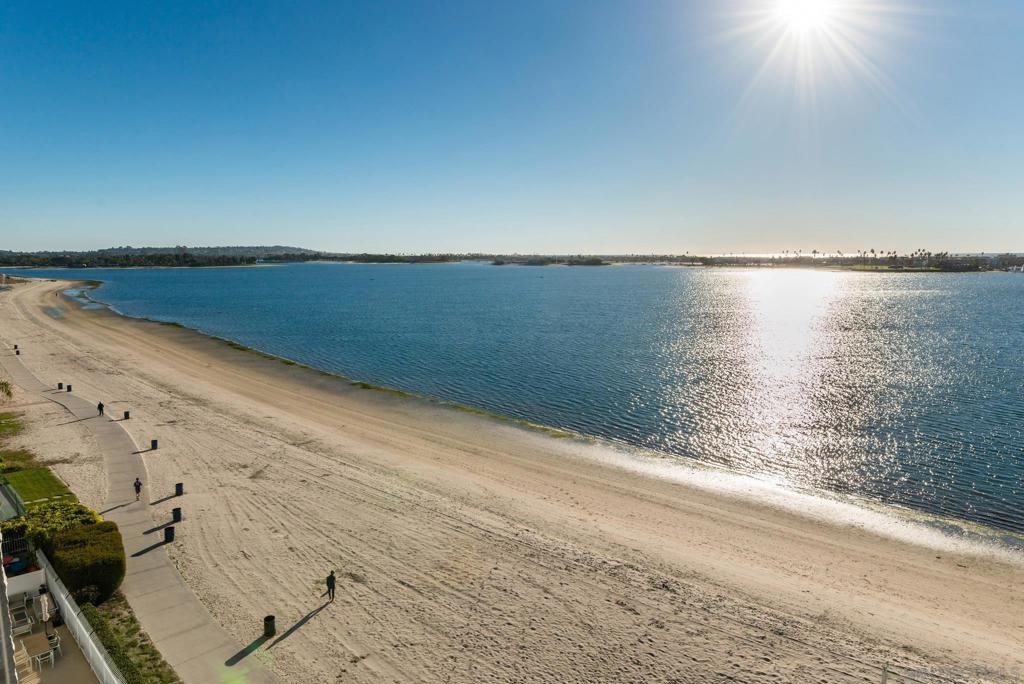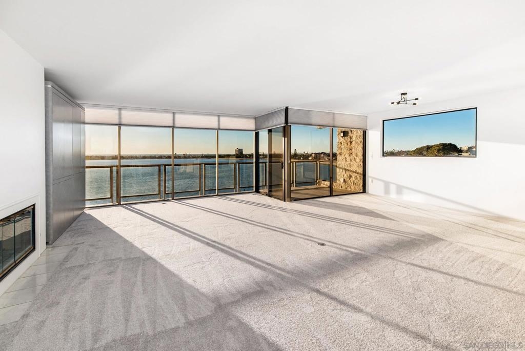 Penthouse residence with unobstructed panoramic views of Sail Bay and to the Pacific! Located in a premier building right on the waterfront, this expansive 2 BD/2 BA condo features floor-to-ceiling windows and sliding glass doors to capture the mesmerizing views. With only 10 total residences, the building features a waterfront pool and spa, secure access to the boardwalk and bay, and sauna with full bath. This is the highest penthouse in Sail Bay and the unit includes 2 parking spaces and storage in the secure underground garage and is ready for you to make it your own.