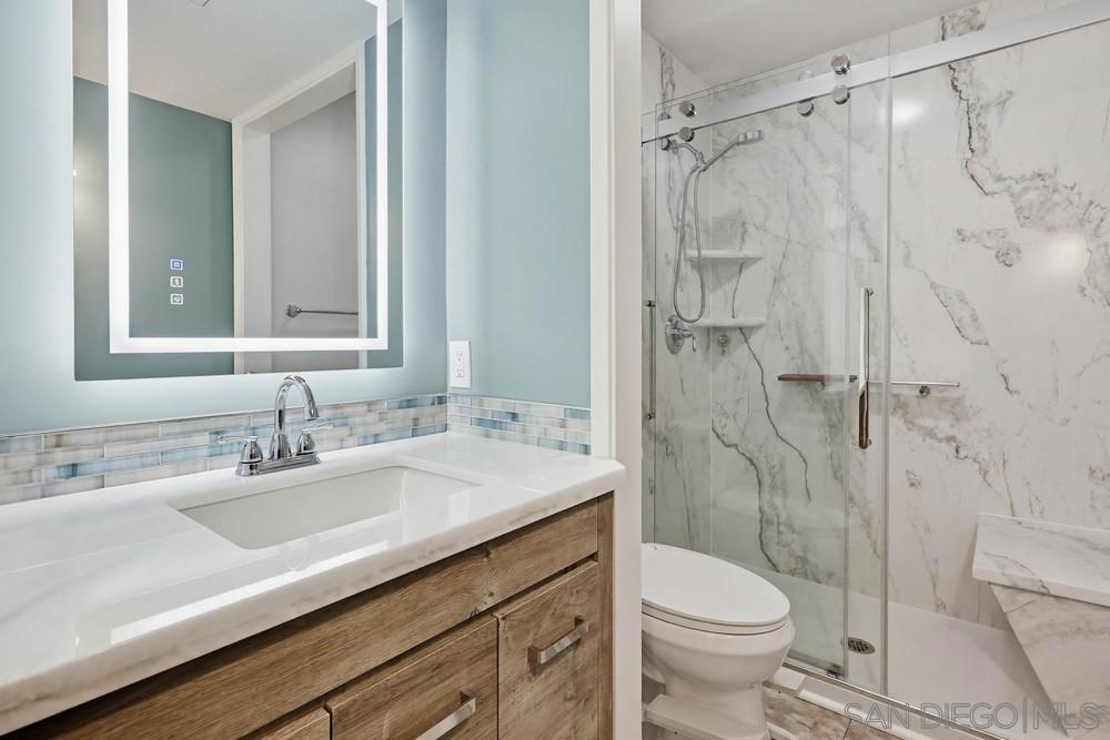 Move-in ready and beautifully remodeled Sea Colony Plan 4 (Shearwater) condo in the heart of Point Loma. Located in the original model-home row of the community, this home enjoys an unusually open feel with the widest sidewalk frontage in the complex and greater privacy from neighbors. The home has been extensively upgraded in 2023–2024 with thoughtful, high-quality finishes throughout. Nearly every surface has been refreshed, including Travertine-style tile flooring throughout, new lighting, recessed lights, ceiling fans, doors, and fixtures. The remodeled kitchen features new appliances, countertops, backsplash, sink, and cabinetry updates. All three bathrooms have been fully renovated with modern fixtures and easy-clean showers with lifetime warranties.Additional upgrades include quad-pane Quiet Home Program windows and doors, new Juliette door, Dream-style bay window, upgraded electrical panel, new plumbing connections, water filtration system, and a new water heater. Vaulted ceilings, abundant natural light, and two private patios create a bright coastal atmosphere throughout the home. Enjoy the convenience of a spacious two-car garage with storage and in-unit laundry. The Sea Colony community offers resort-style amenities including pool, spa, tennis & pickleball courts, basketball courts, playground, clubhouse, and picnic areas. Ideally located next to shopping, restaurants, Point Loma Library, and schools, and just 1.5 miles to Ocean Beach Dog Beach with easy access to the airport and downtown. Quiet location away from the community center with peaceful surroundings.